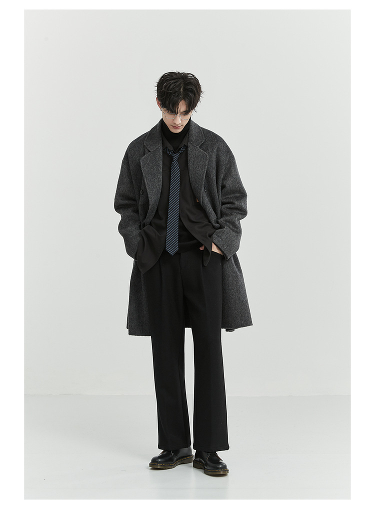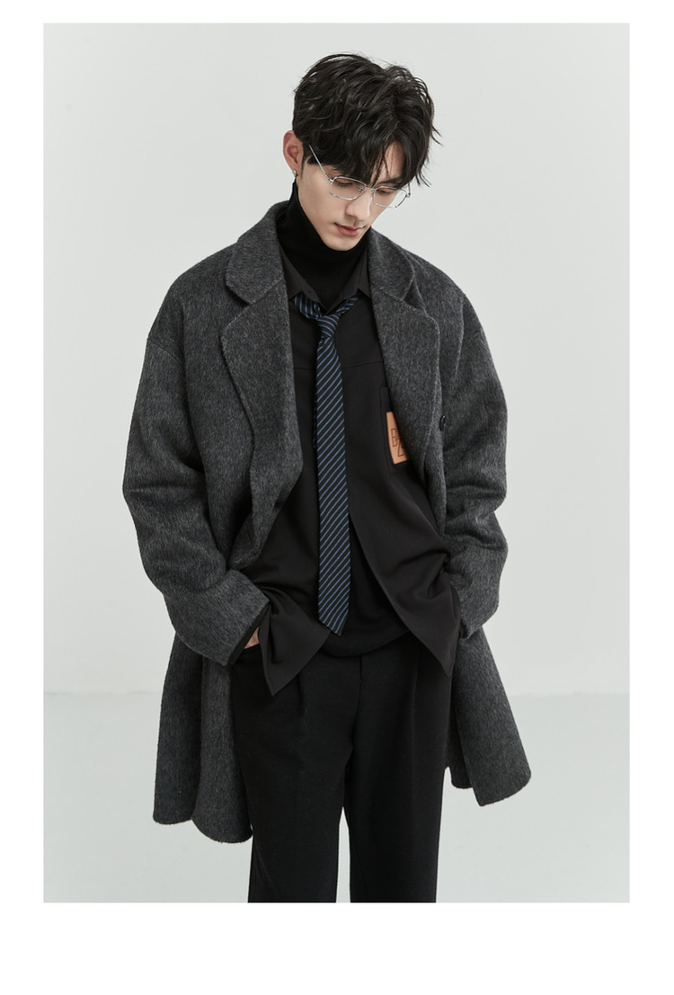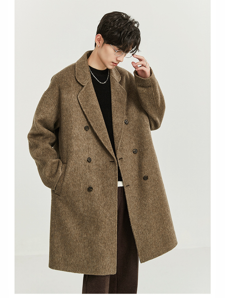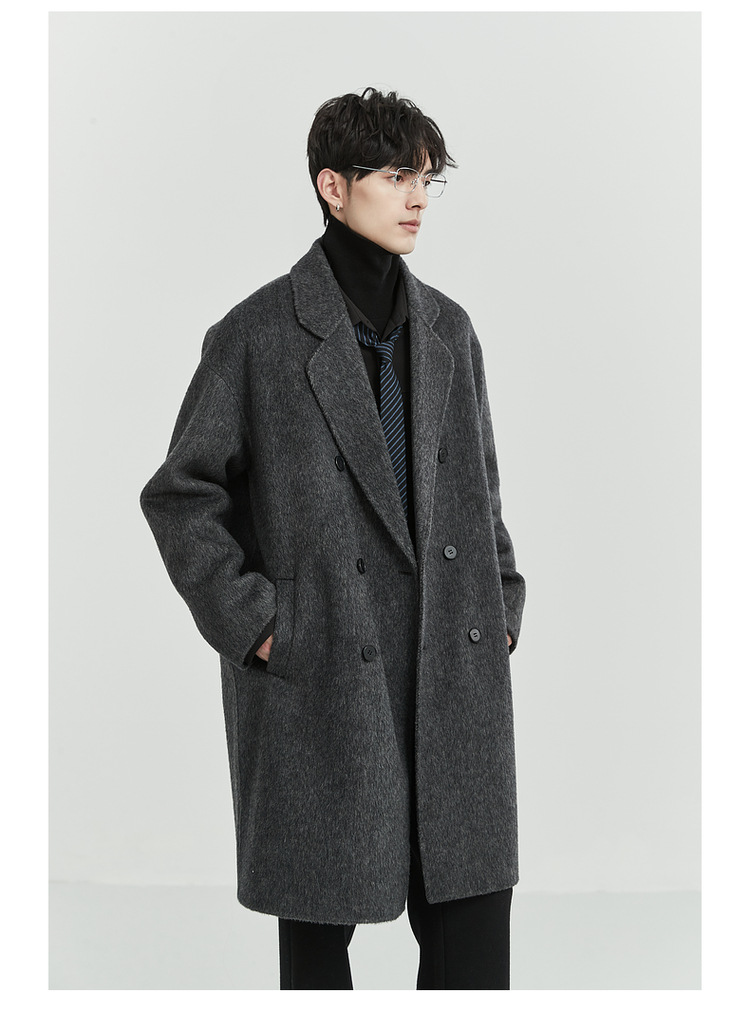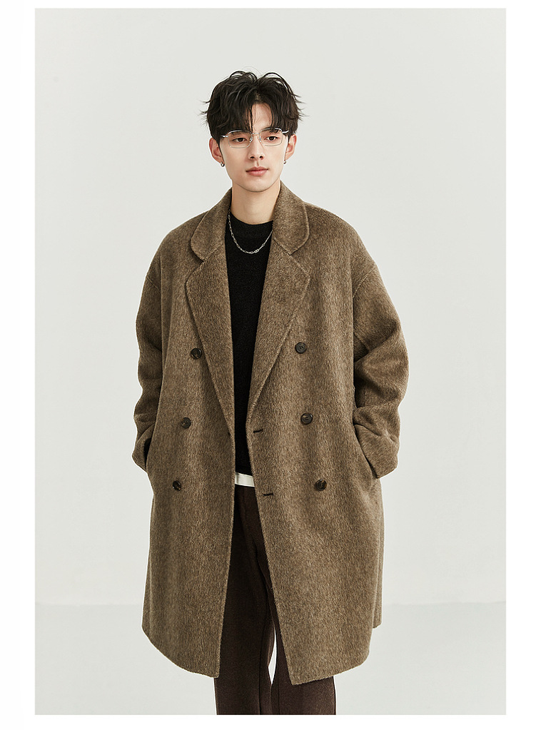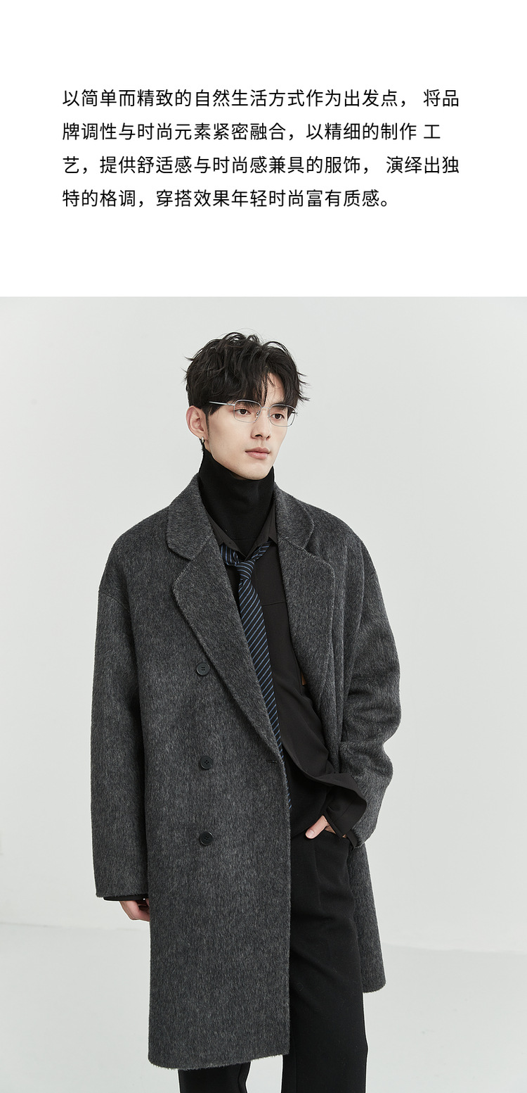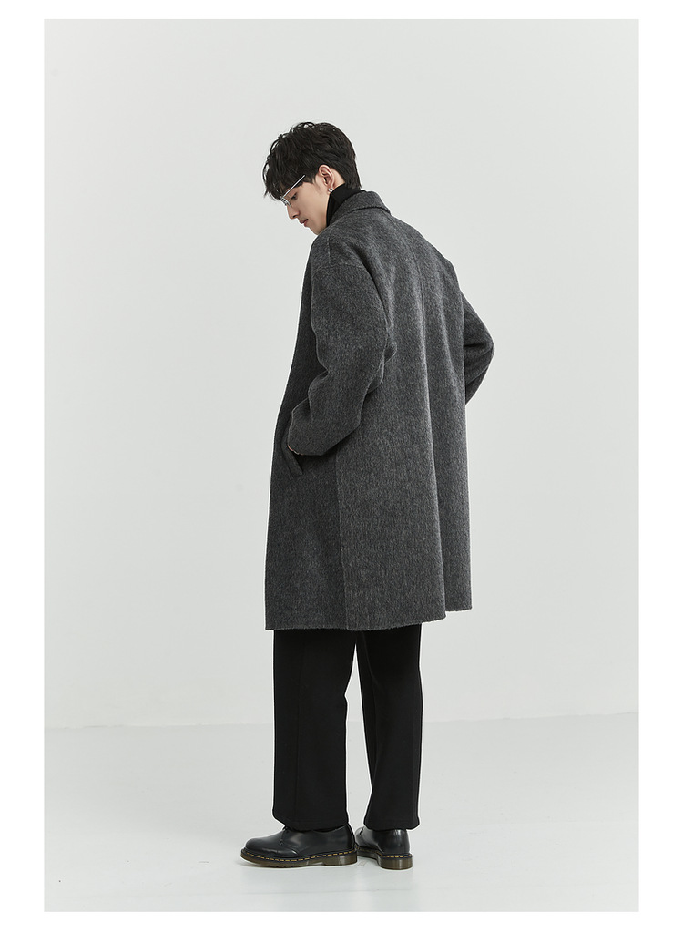 정품 클래식 양면 모직 코트 롱 스타일 혼방 고품질 낙타털 두꺼운 원단 울 코트 남성용