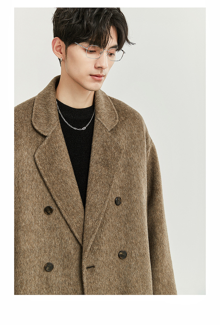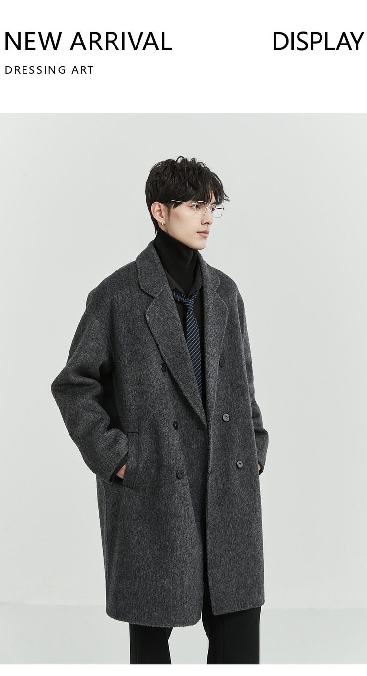 정품 클래식 양면 모직 코트 롱 스타일 혼방 고품질 낙타털 두꺼운 원단 울 코트 남성용스토어 가기