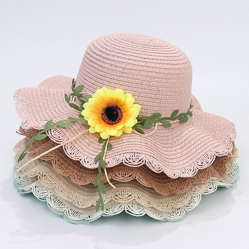 밀짚 모자 여성 여름 유행 해변 큰 테두리 태양 보호 태양 그늘 해바라기 밀짚 모자 해변 올 매치 멋진 모자
