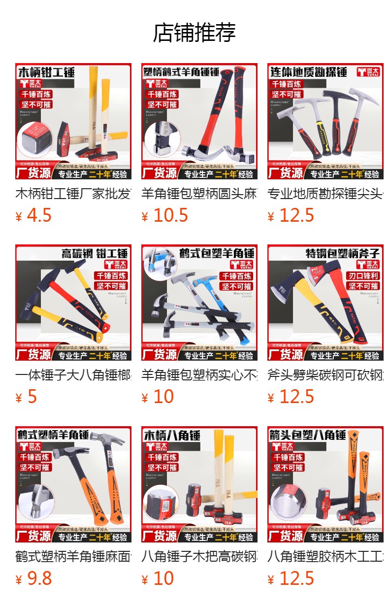 가정용 망치 목공 장식용 못빼기 망치 가정용 비상 탈출 수리 차량 설치용 플라스틱 손잡이 망치스토어 가기