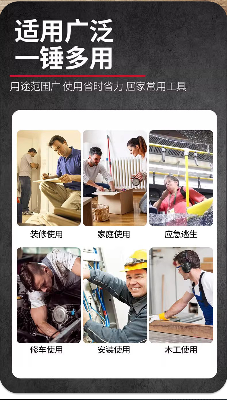 가정용 망치 목공 장식용 못빼기 망치 가정용 비상 탈출 수리 차량 설치용 플라스틱 손잡이 망치