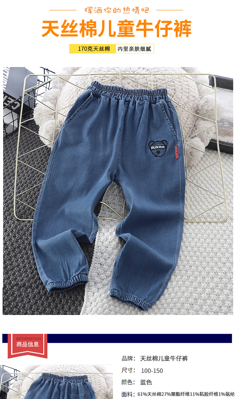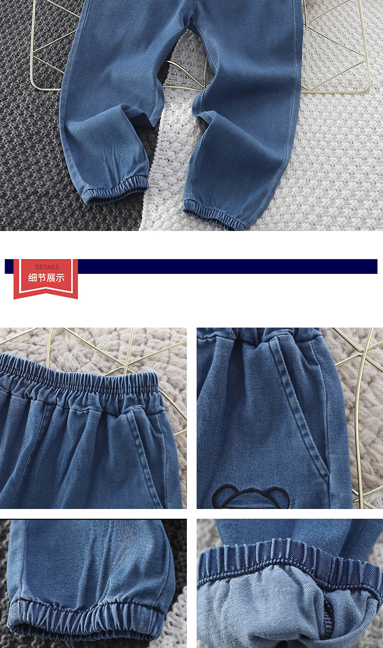 소년 청바지 봄과 가을 2024 새로운 스타일의 아기 소녀 서양식 발목 묶음 바지 어린이 봄 캐주얼 와이드 레그 바지스토어 가기