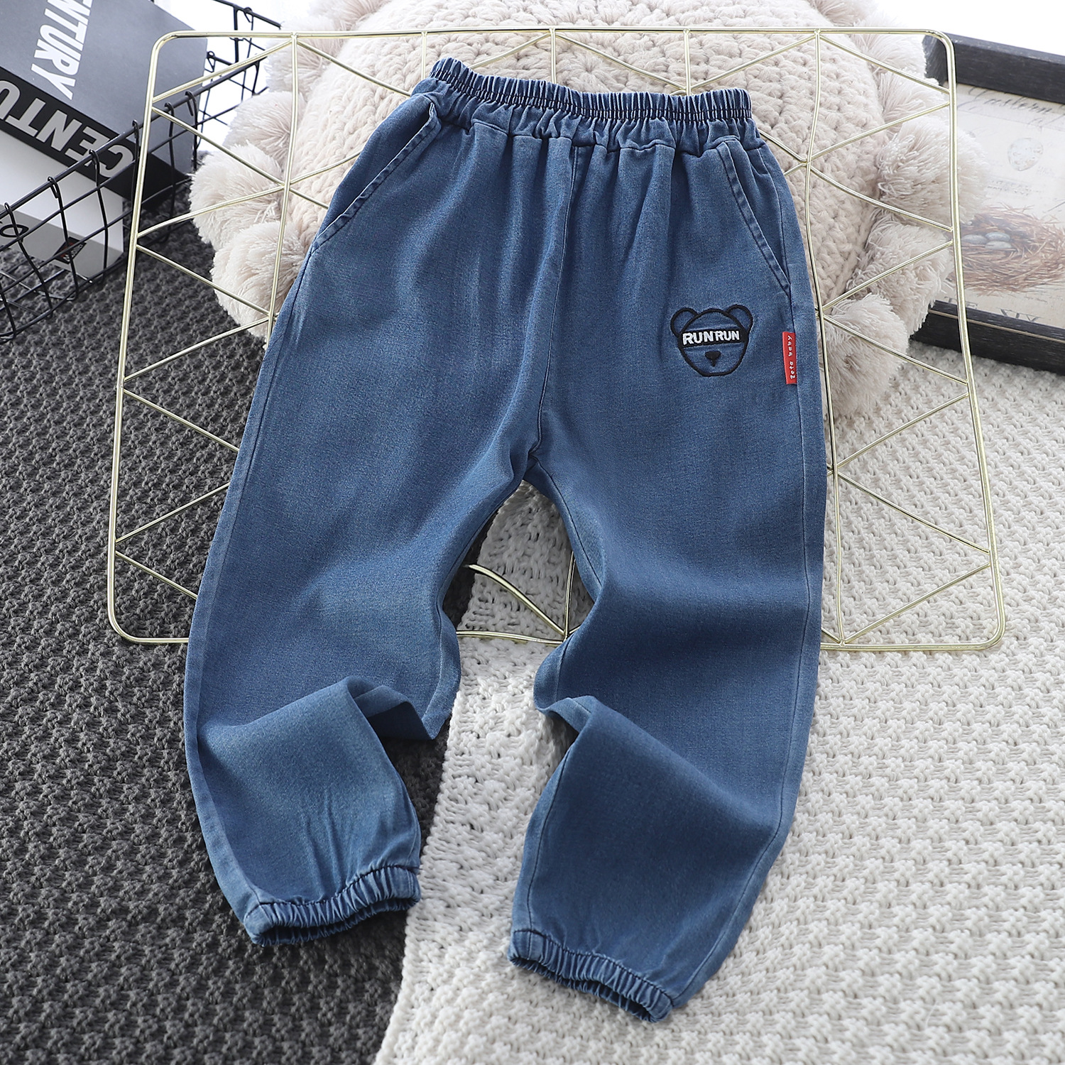 소년 청바지 봄과 가을 2024 새로운 스타일의 아기 소녀 서양식 발목 묶음 바지 어린이 봄 캐주얼 와이드 레그 바지