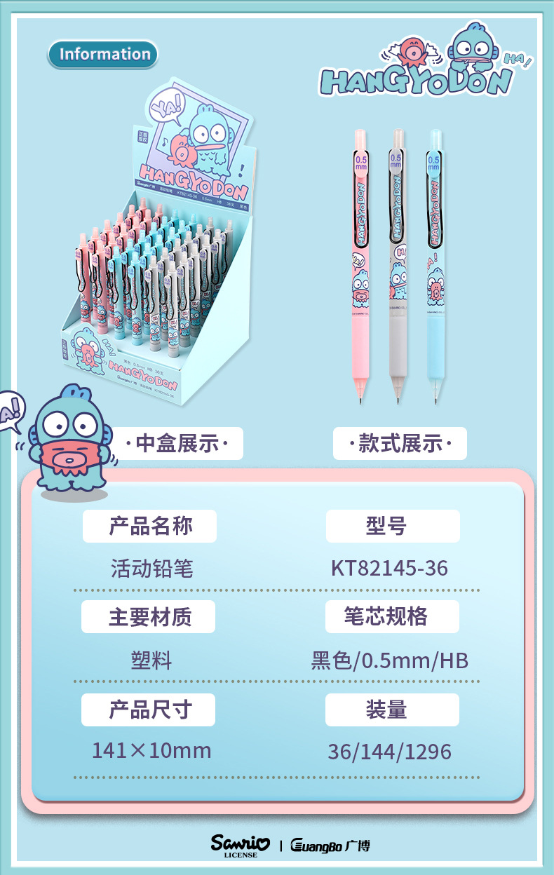 광보 산리오 정품 인어 한톤 활동 연필 만화 애니메이션 0.5 프레스 HB 쓰기 기계 연필스토어 가기