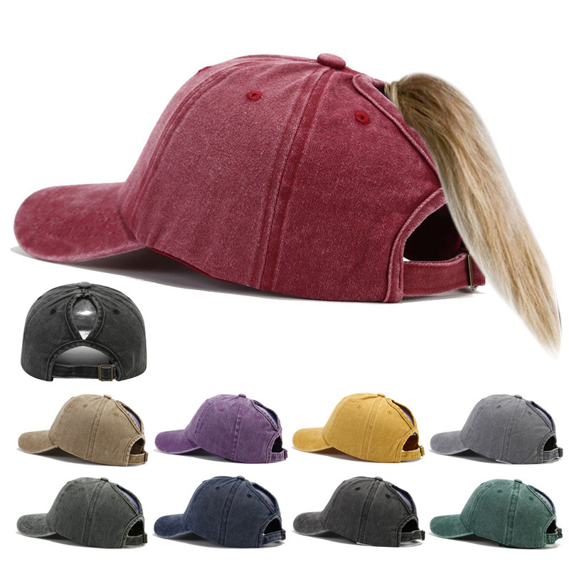 대외 무역 포니 테일 야구 모자 여자 국경 간 복고풍 데님 정점 모자 아마존 초라한 태양 모자스토어 가기