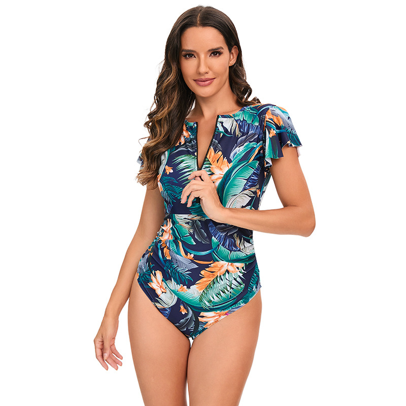 국경 간 упальник 대외 무역 수영복 유럽과 미국 보수적 인 프린트 러플 비치 수영복 비키니스토어 가기