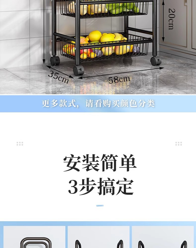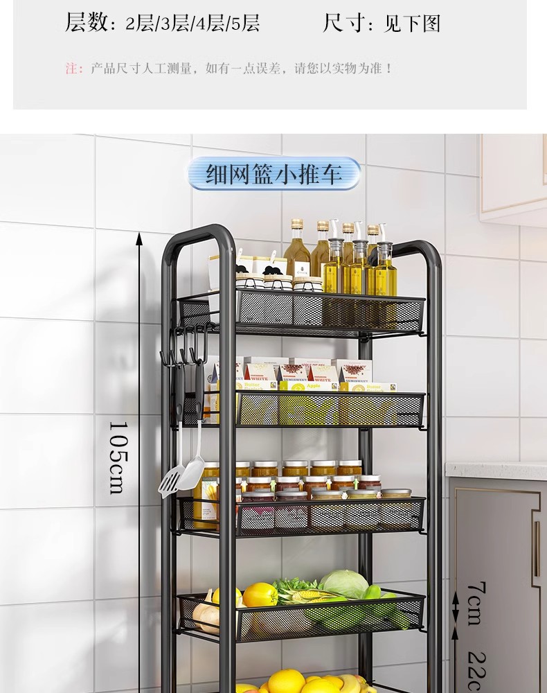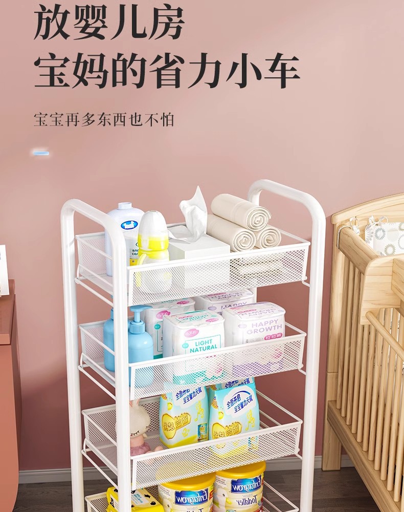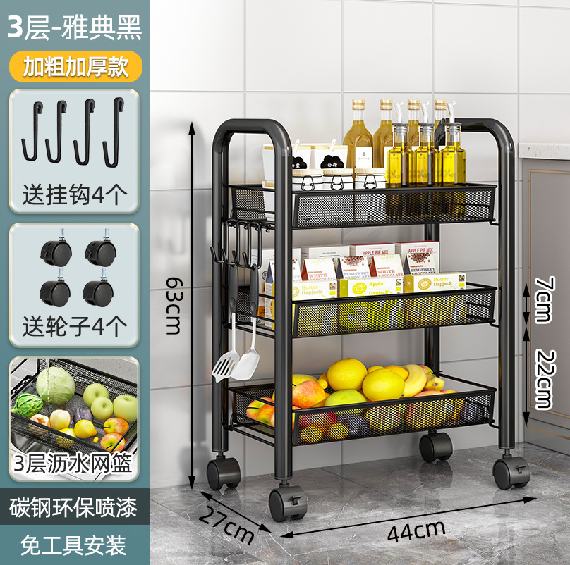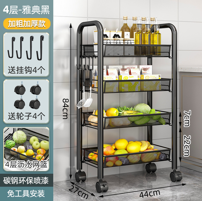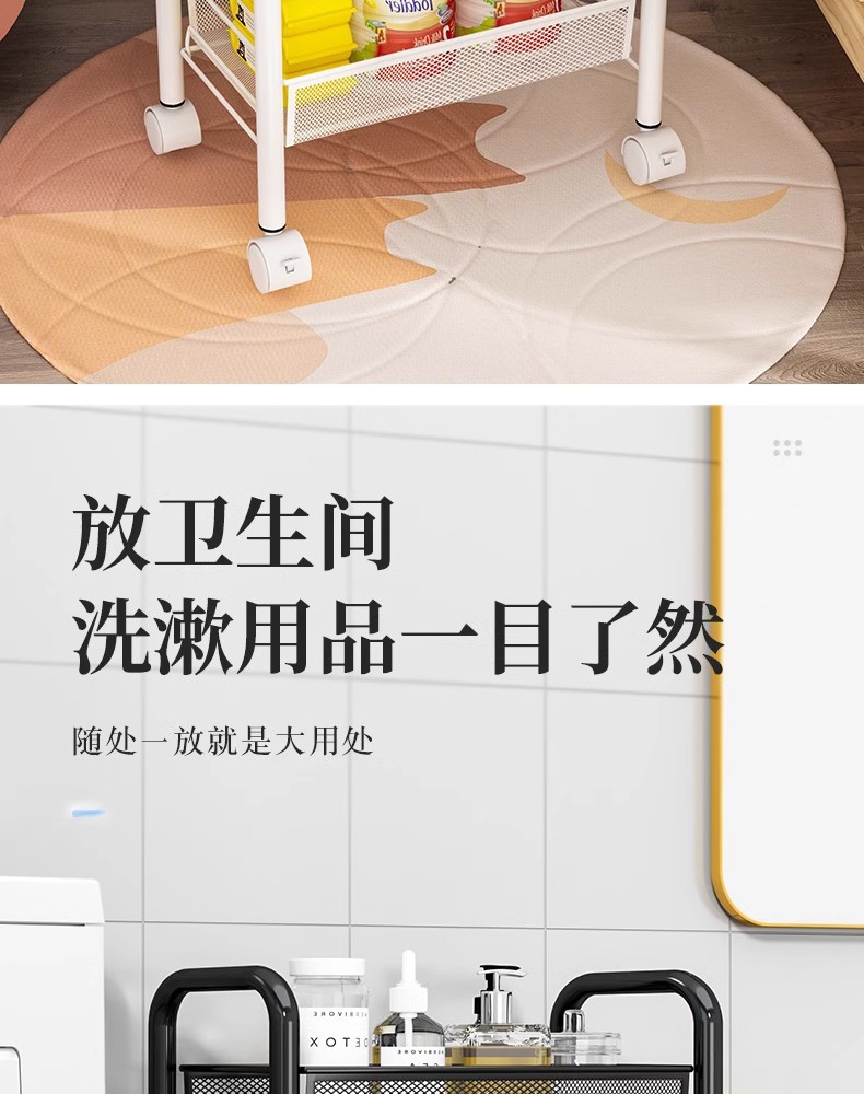 落地多层蔬菜篮厨房置物架移动小推车家用卧室储物浴室用品收纳架