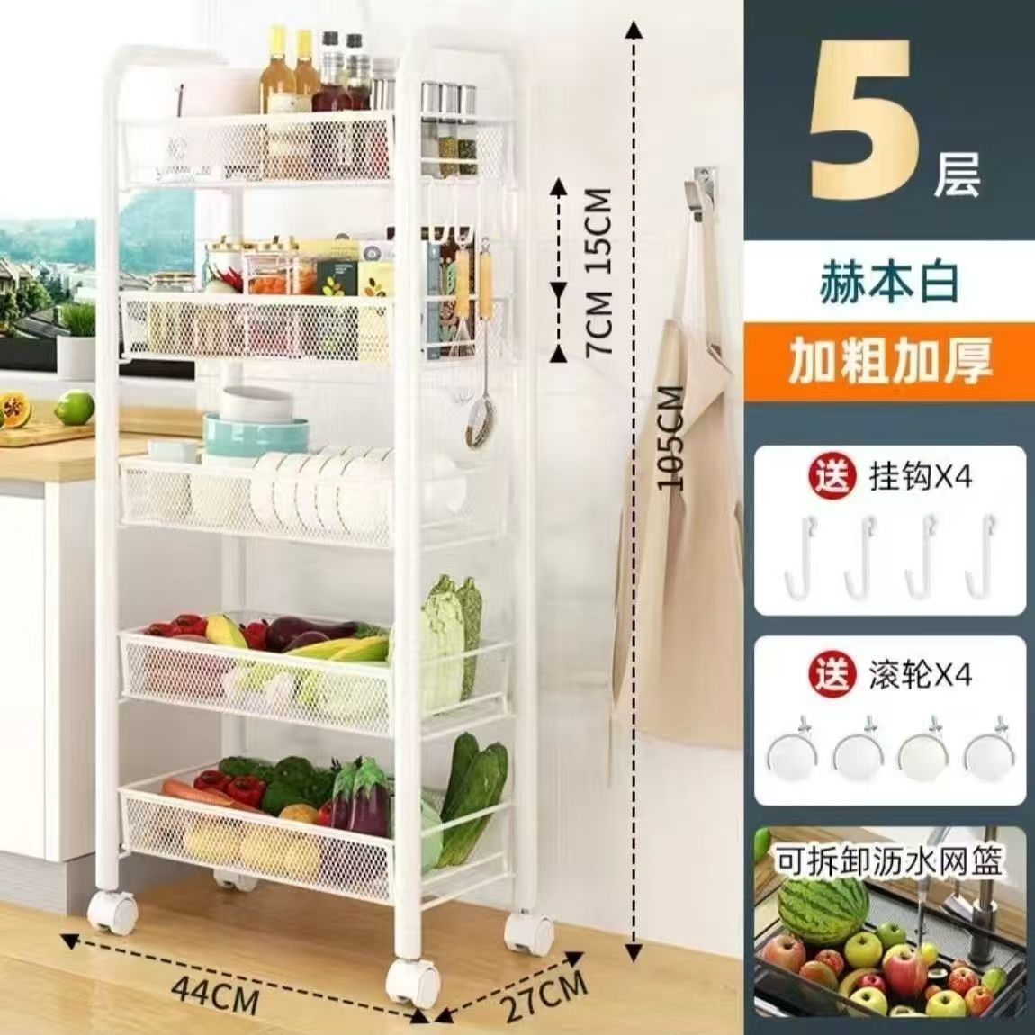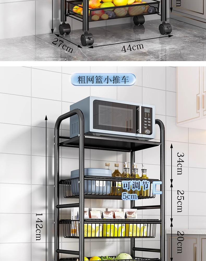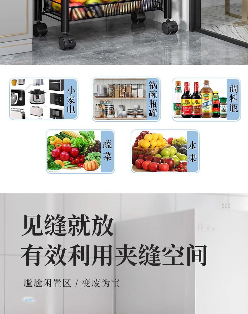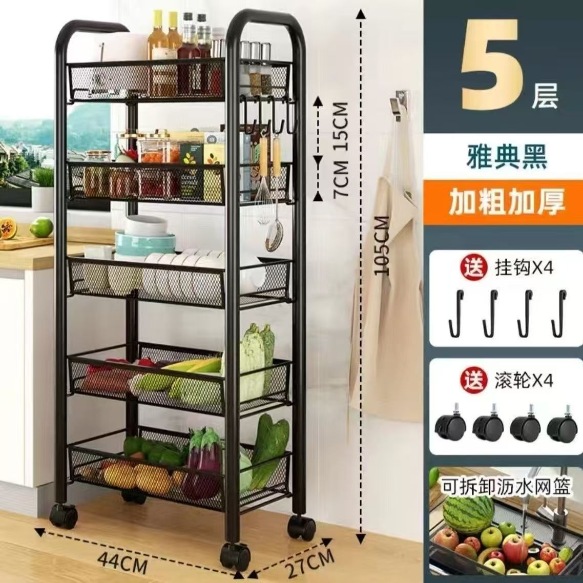 落地多层蔬菜篮厨房置物架移动小推车家用卧室储物浴室用品收纳架