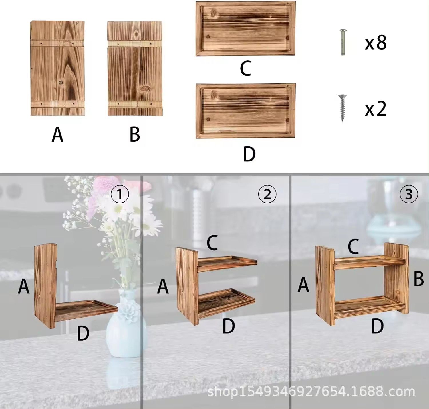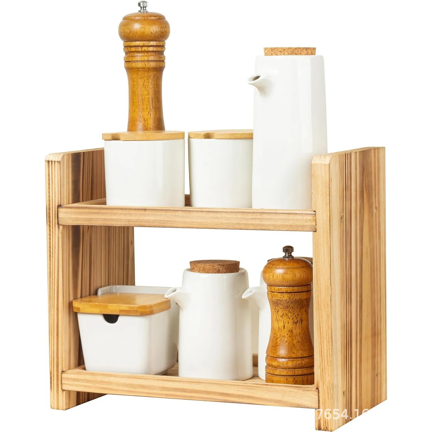 나무 더블 레이어 스토리지 랙 주방 카운터 탑 스파이스 랙 데스크탑 장식품 장식 랙 욕실 용품 솔리드 우드 스토리지 랙