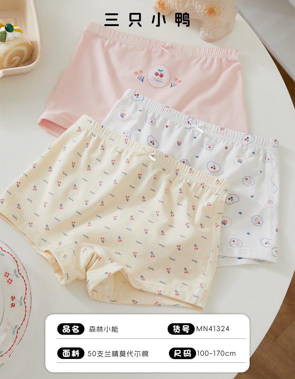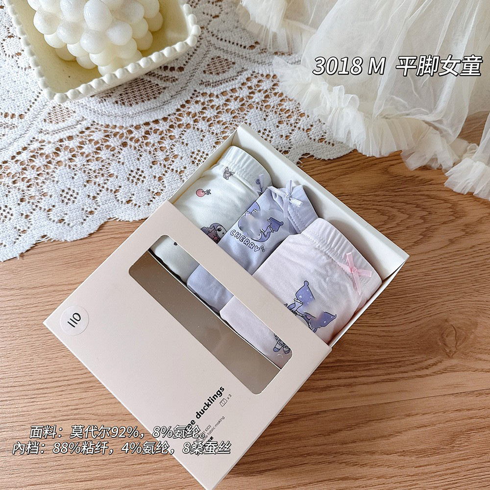 掌柜说:三只小鸭薄款儿童平角内裤男女童卡通印花莫代尔四角短裤盒装宝宝内裤