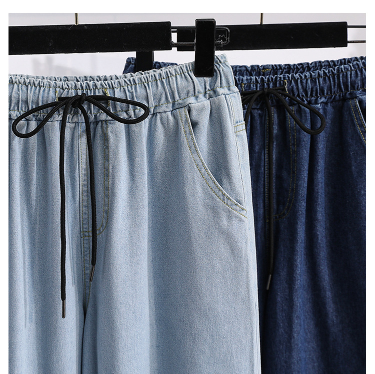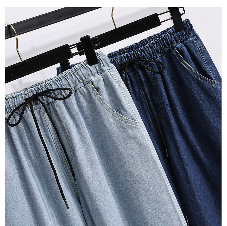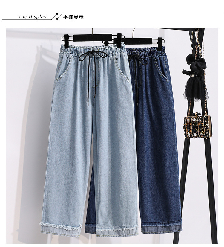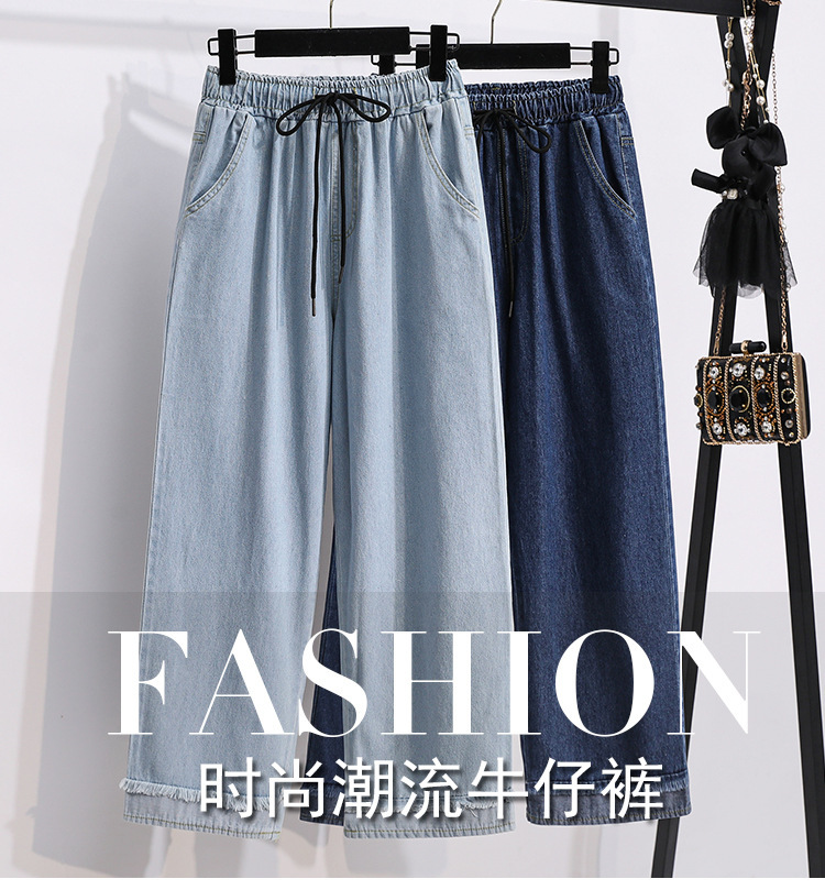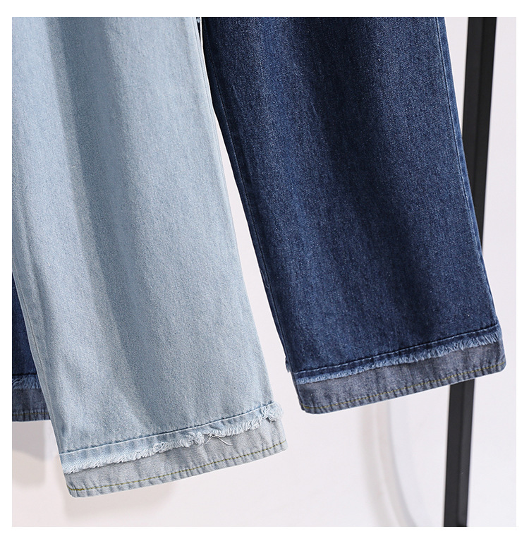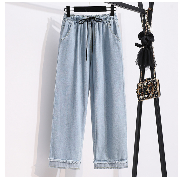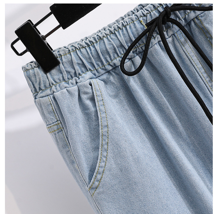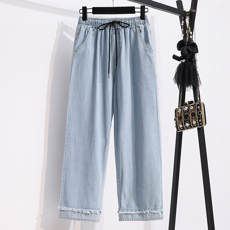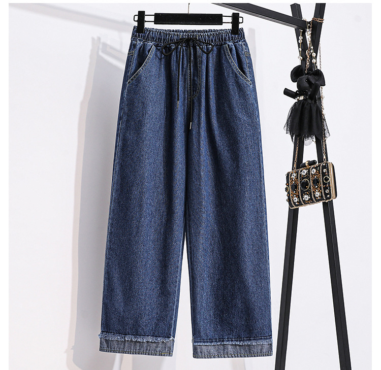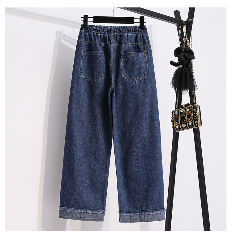 봄과 가을 새로운 도착 플러스 사이즈 엘라 스토 탄성 높은 허리 턴업 넓은 다리 청바지 여성 한국 스타일 학생 느슨한 캐주얼 스트레이트 팬츠스토어 가기