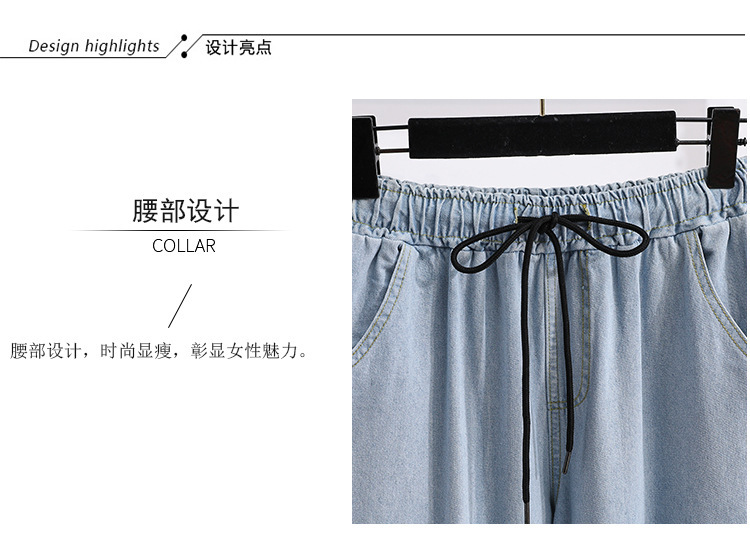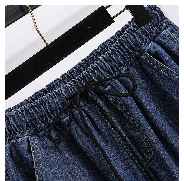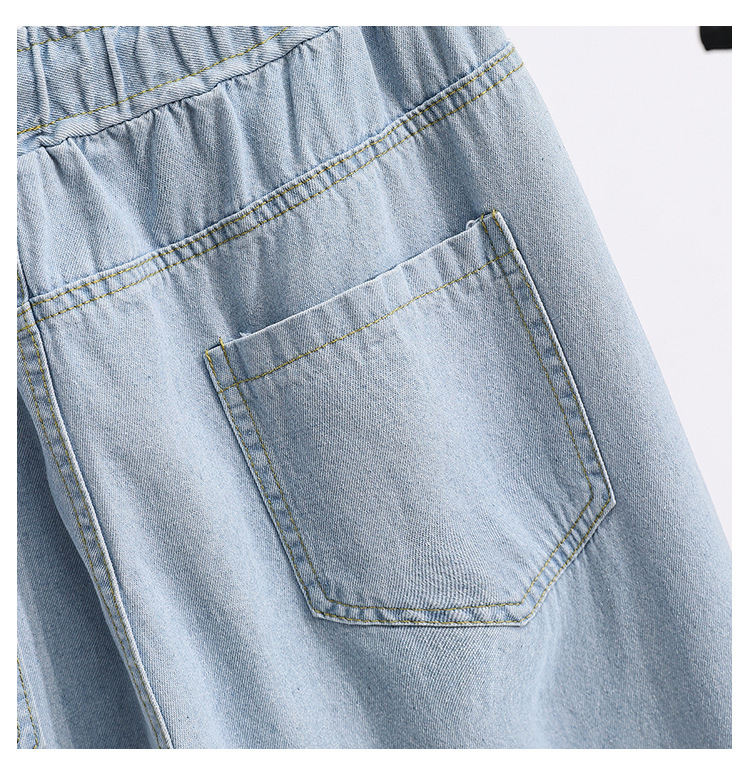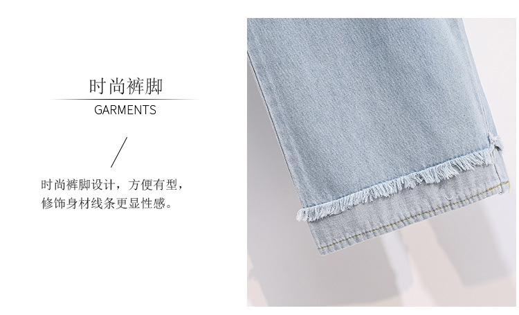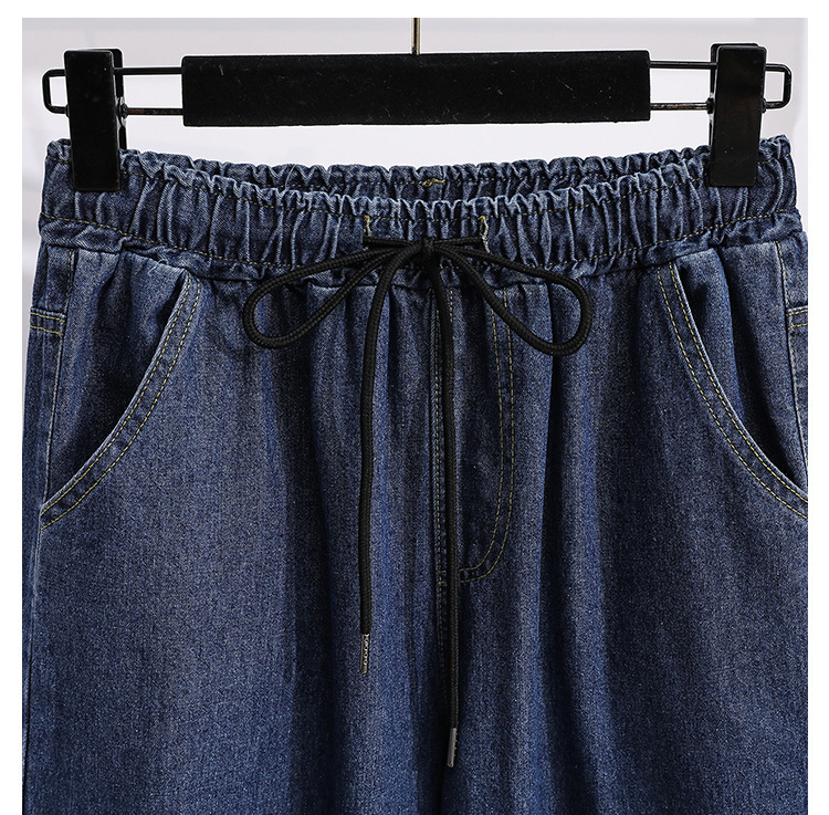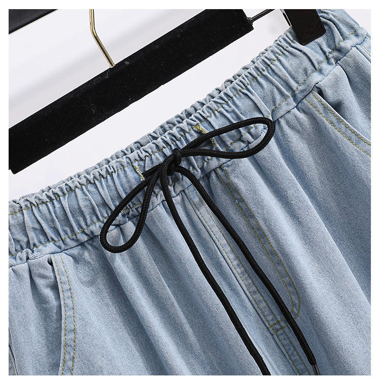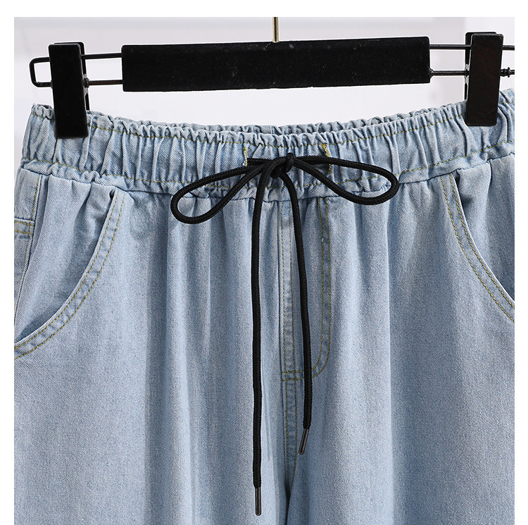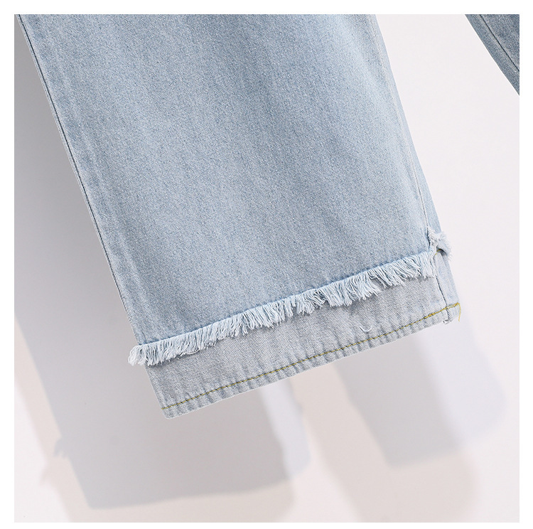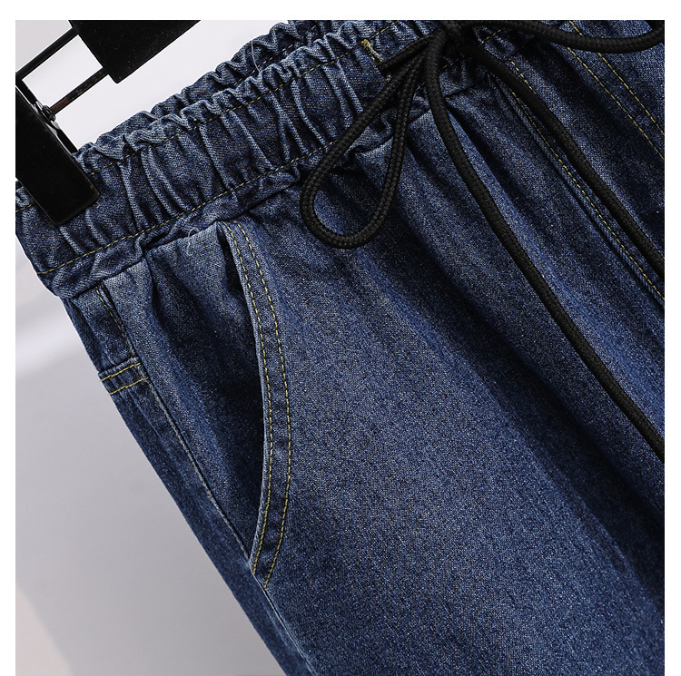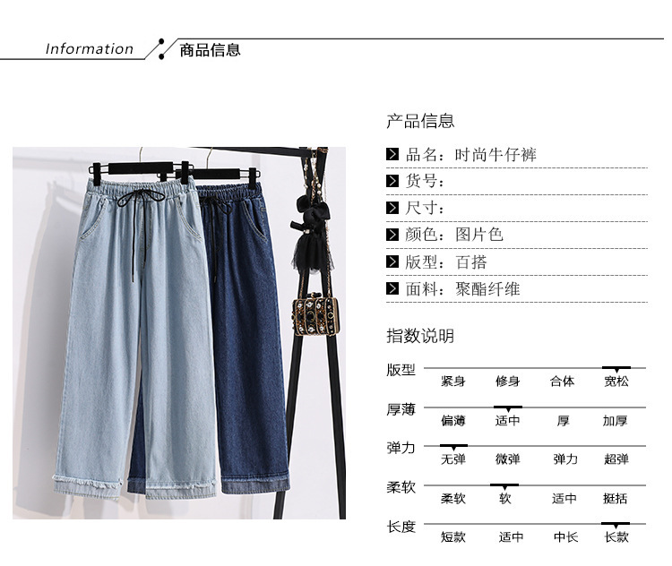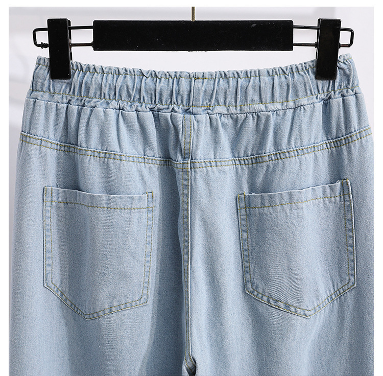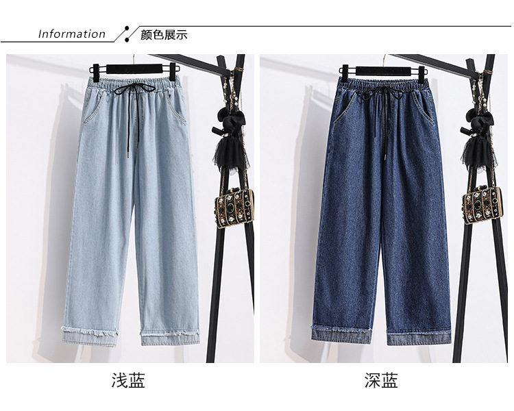 봄과 가을 새로운 도착 플러스 사이즈 엘라 스토 탄성 높은 허리 턴업 넓은 다리 청바지 여성 한국 스타일 학생 느슨한 캐주얼 스트레이트 팬츠스토어 가기
