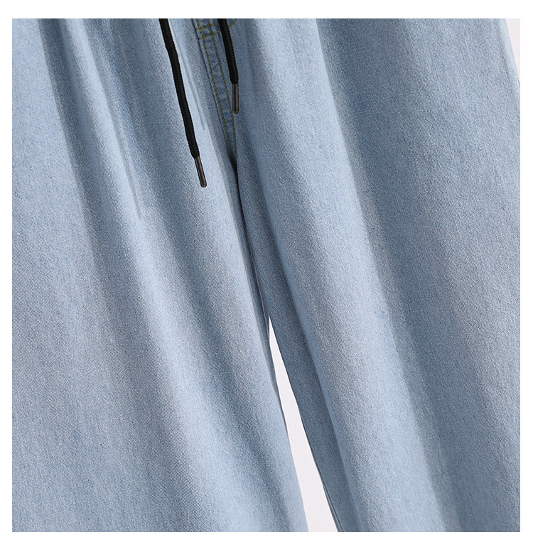 봄과 가을 새로운 도착 플러스 사이즈 엘라 스토 탄성 높은 허리 턴업 넓은 다리 청바지 여성 한국 스타일 학생 느슨한 캐주얼 스트레이트 팬츠