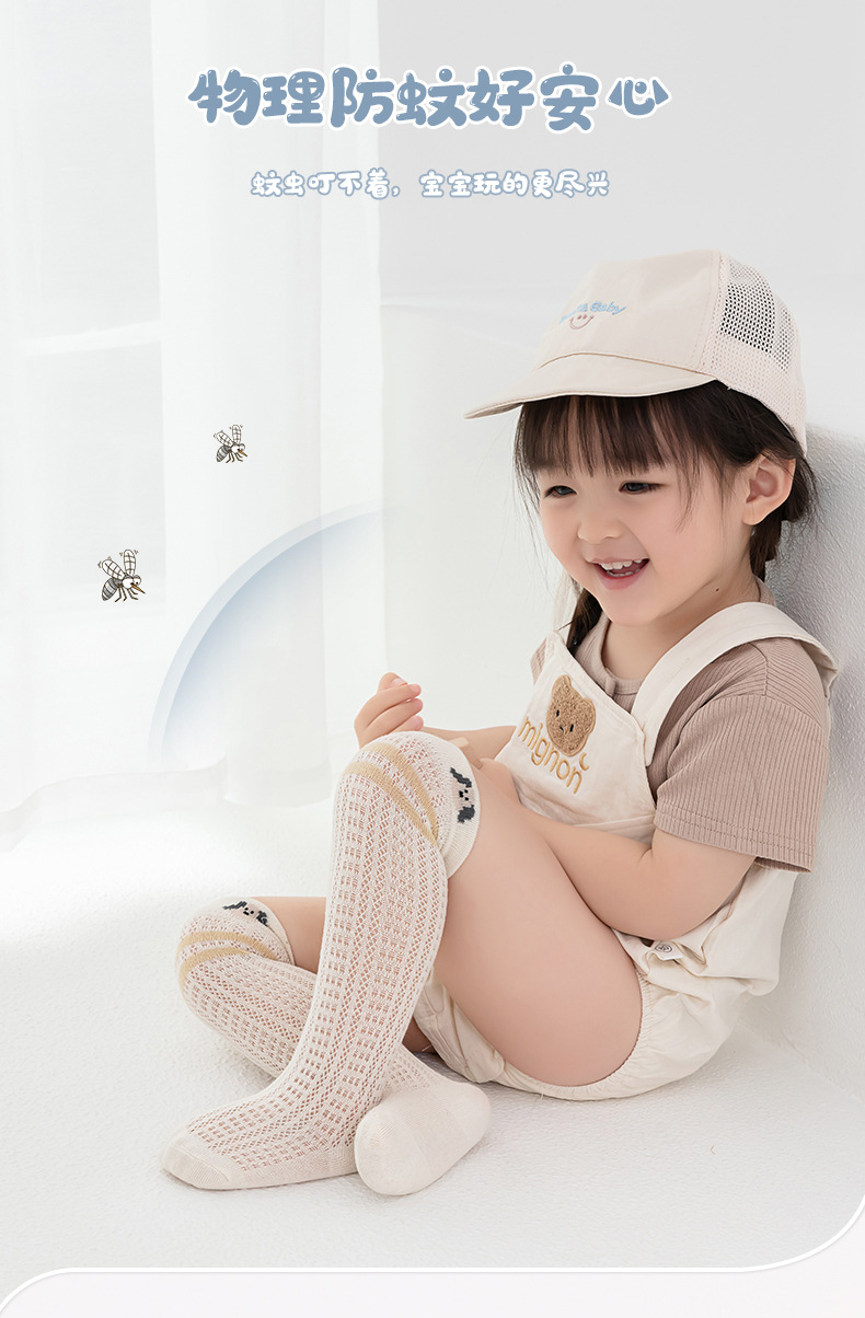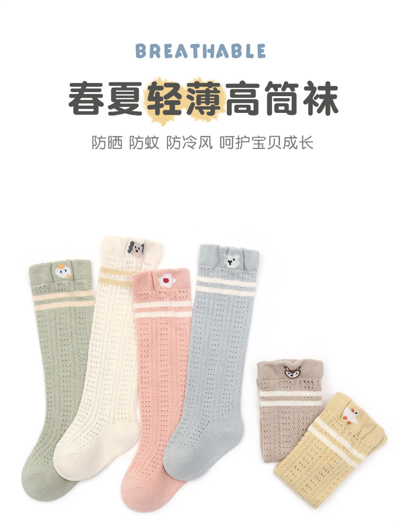 봄여름용 얇은 면 메쉬 소재의 루즈핏 아기 무릎위 양말, 영유아용 하이탑 양말, 루즈핏 만화 캐릭터 모기 방지 양말스토어 가기