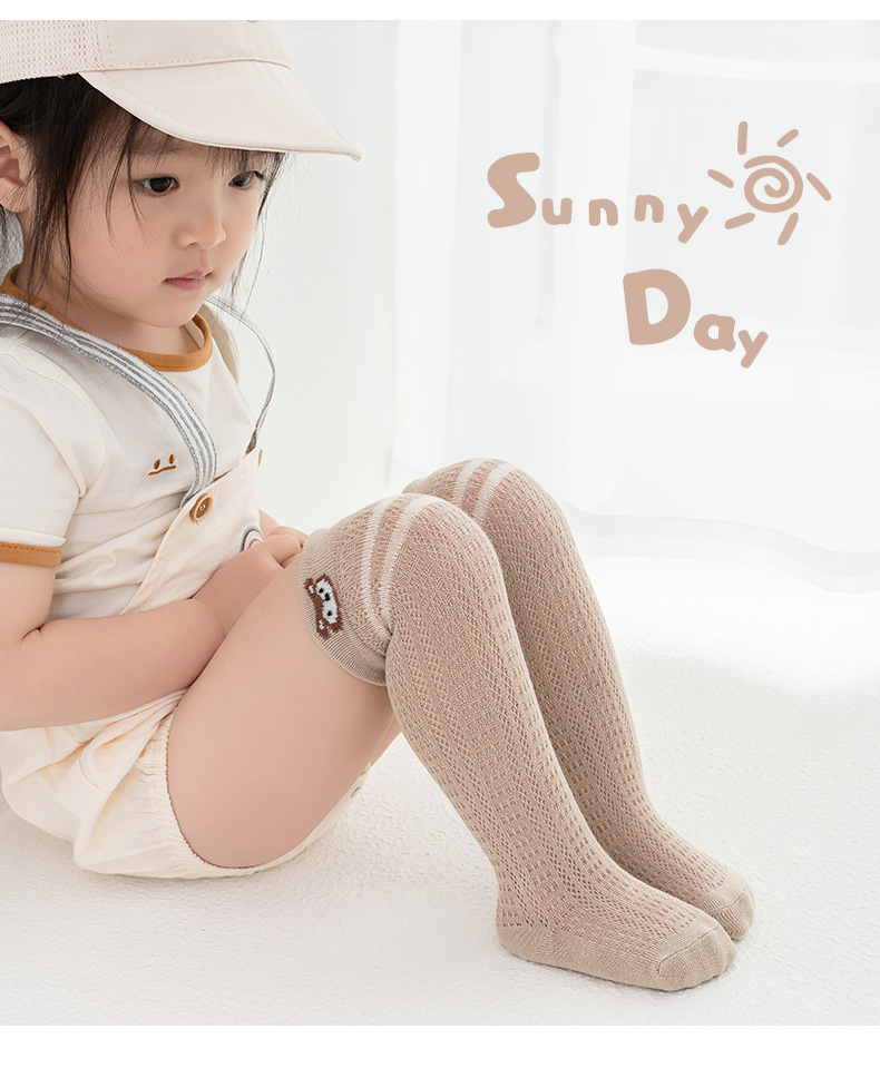 봄여름용 얇은 면 메쉬 소재의 루즈핏 아기 무릎위 양말, 영유아용 하이탑 양말, 루즈핏 만화 캐릭터 모기 방지 양말