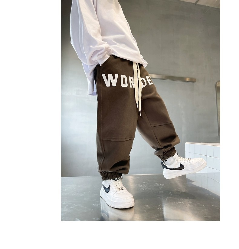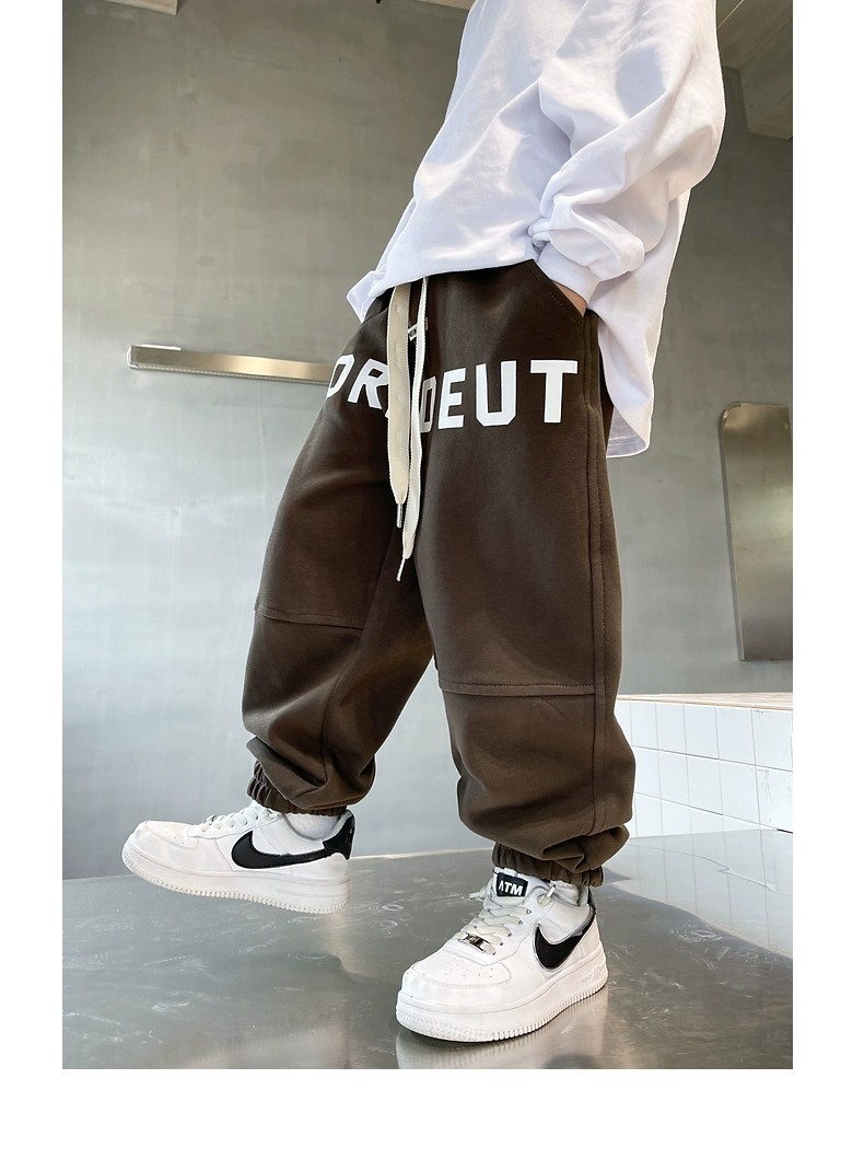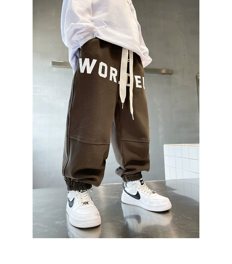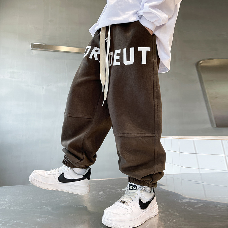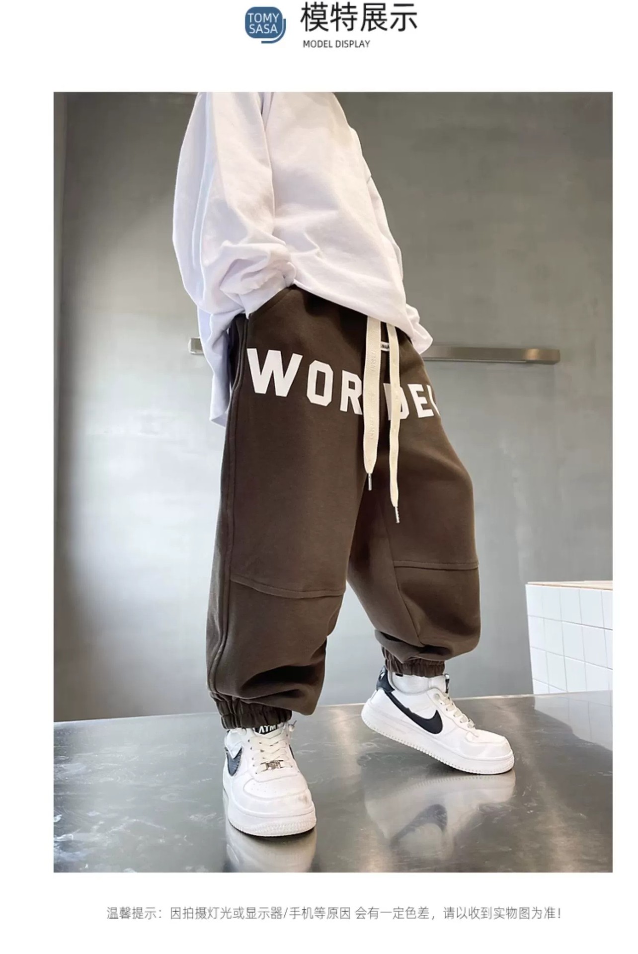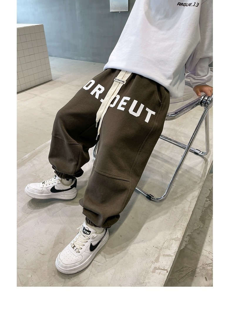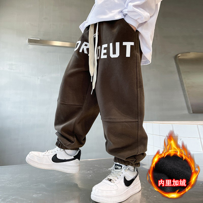 남학생 바지 가을과 겨울 새로운 기모 두껍게 트렌디 한 어린이 겨울 느슨한 스포츠 바지 중형 및 대형 어린이 캐주얼 바지