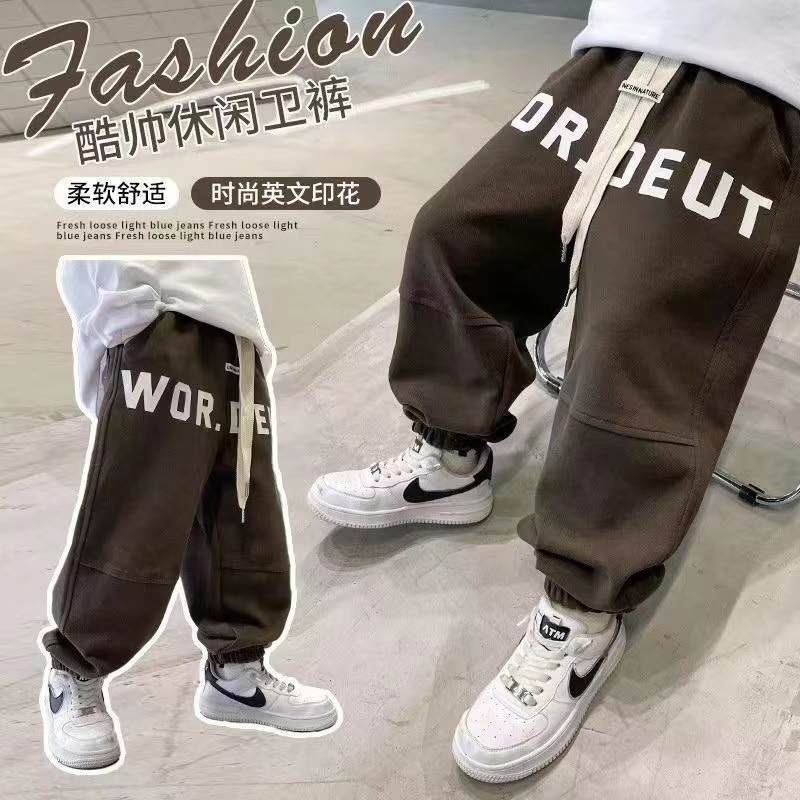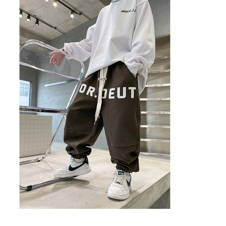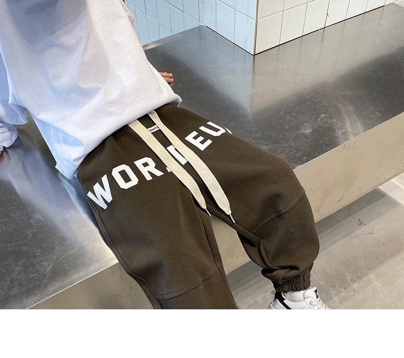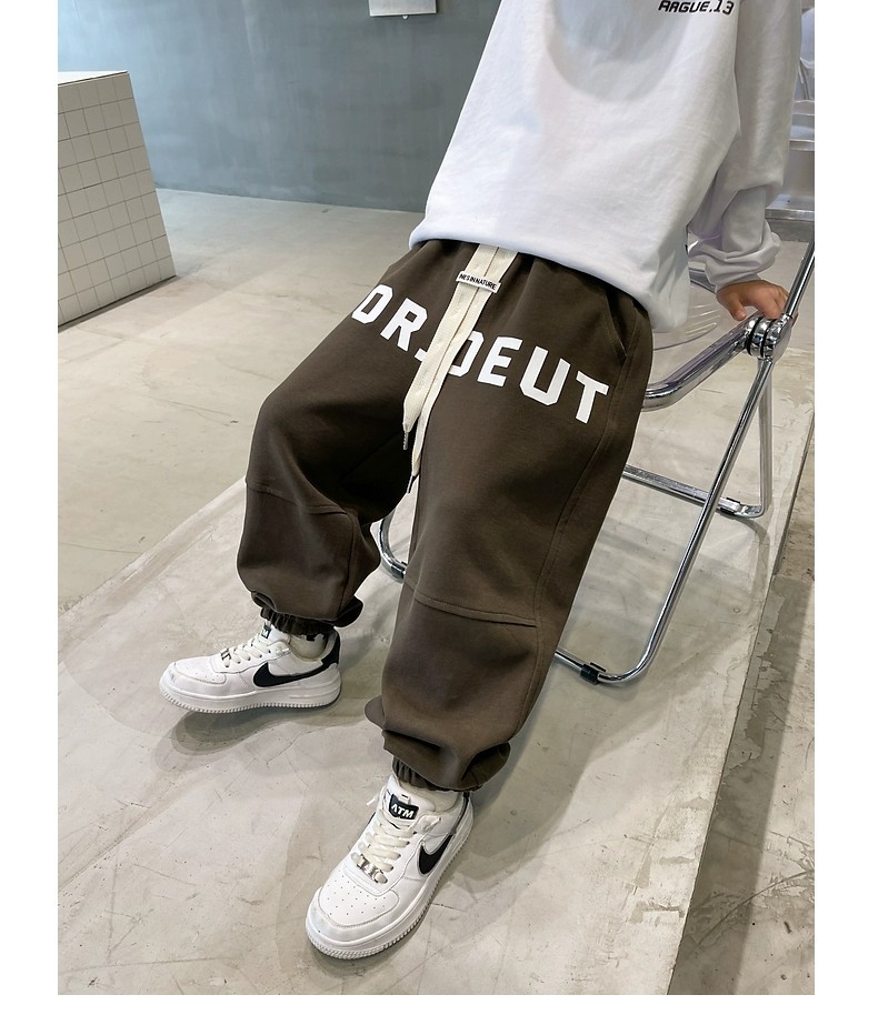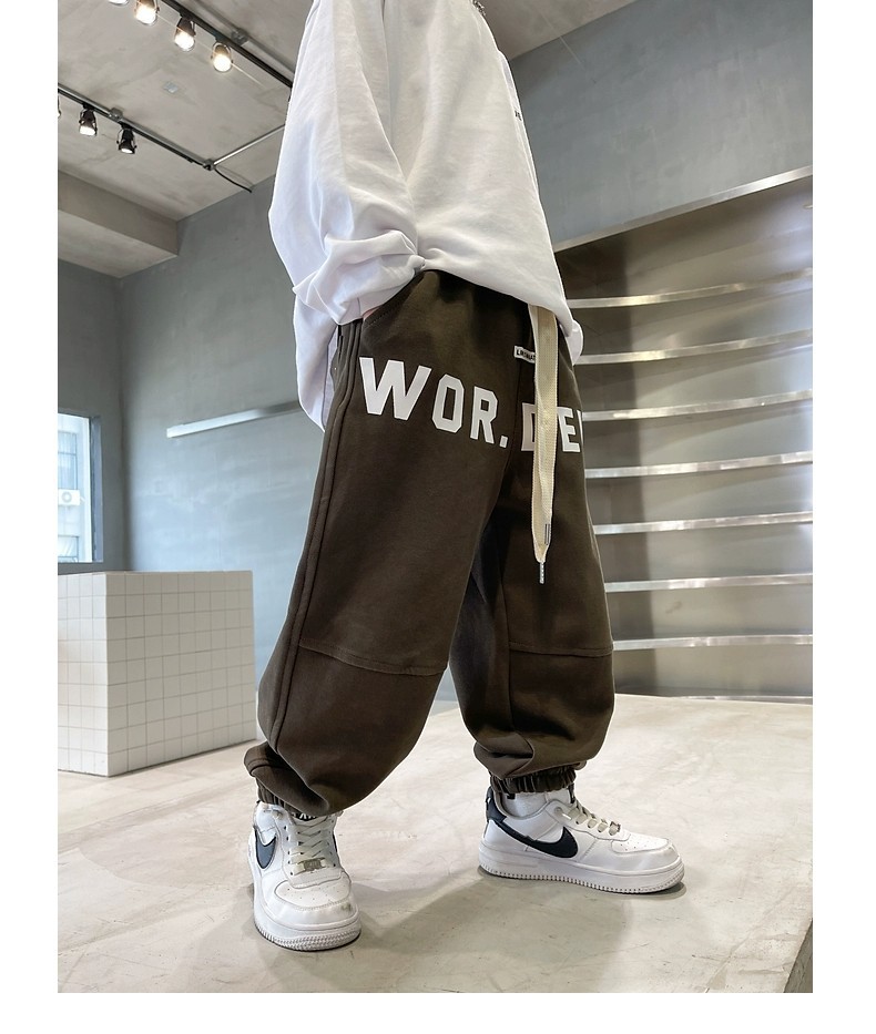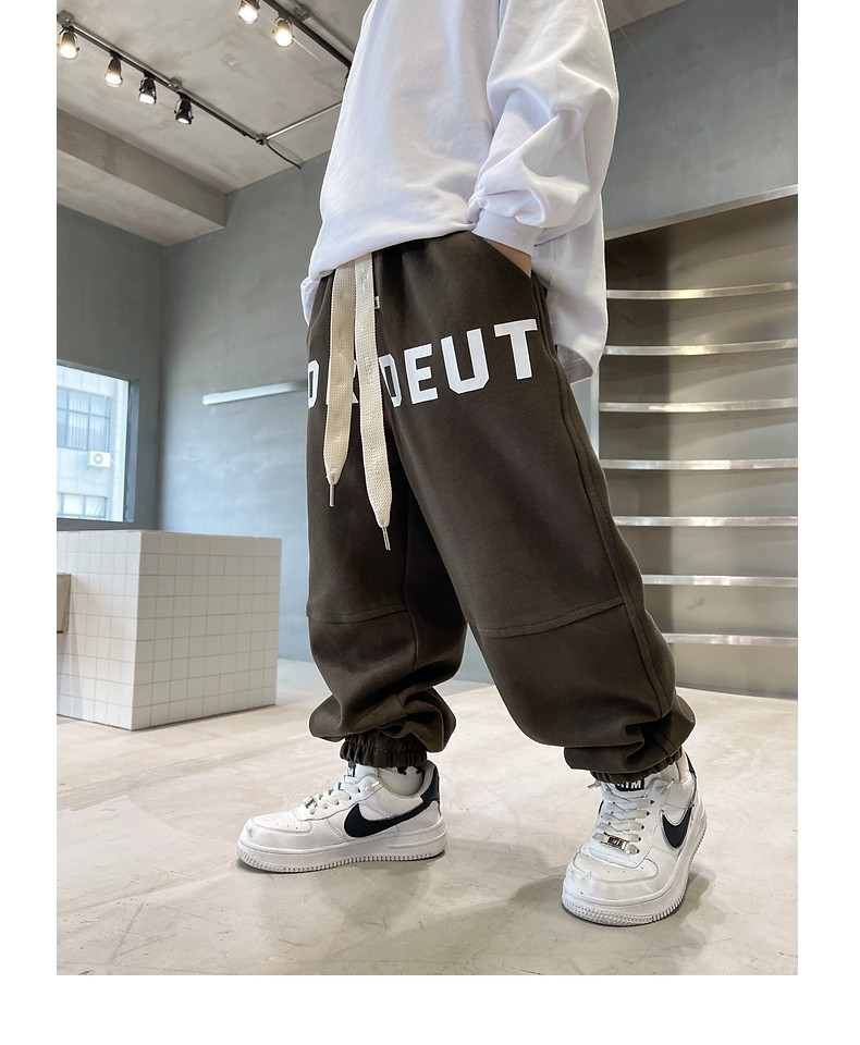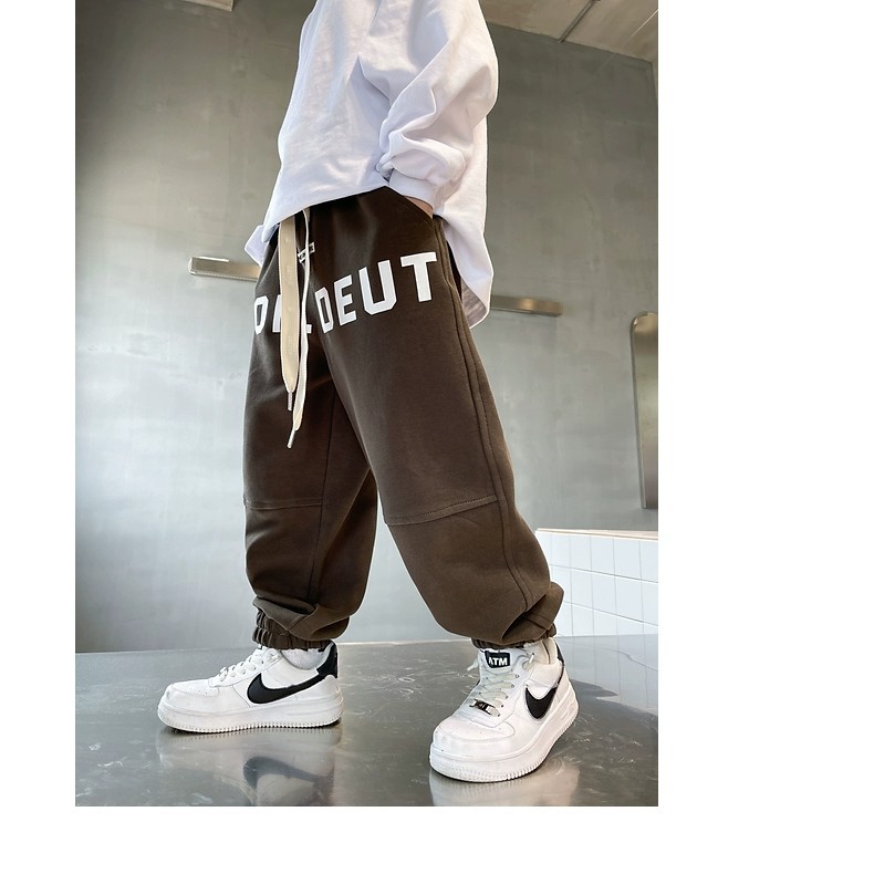 남학생 바지 가을과 겨울 새로운 기모 두껍게 트렌디 한 어린이 겨울 느슨한 스포츠 바지 중형 및 대형 어린이 캐주얼 바지스토어 가기