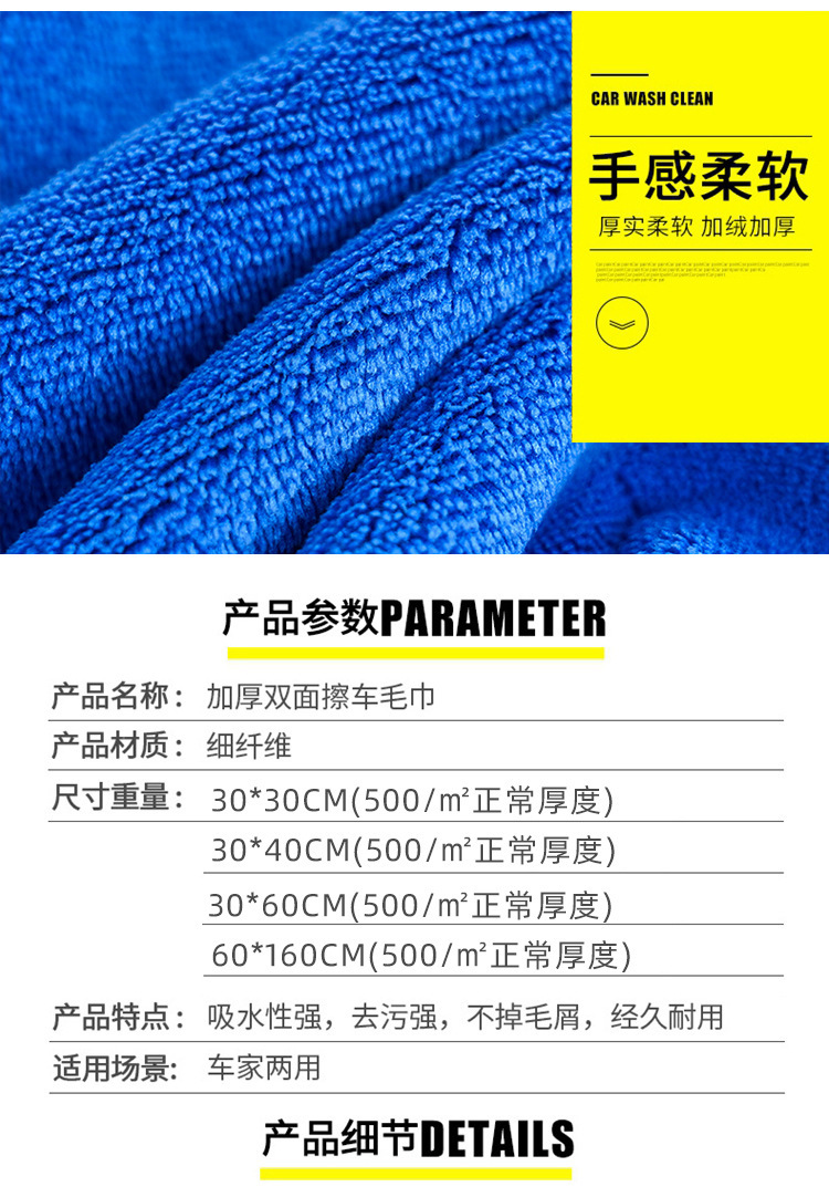 세차 수건 두 배 두꺼운 표면 흡수성 산호 양털 자동차 수건 빠른 드라이 자동차 청소 세차 수건 공장 도매스토어 가기