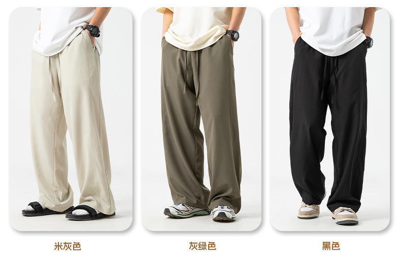 쿨 아이스 실크 캐주얼 바지 남자 여름 라이트 팬츠 느슨한 스트레이트 솔리드 컬러베이스 모든 매치가 아닌 주름 방지 바지스토어 가기