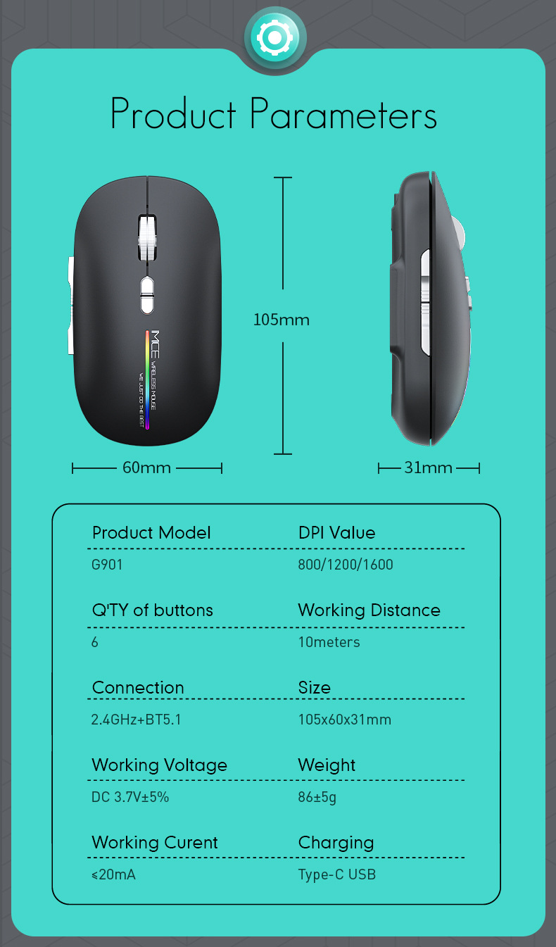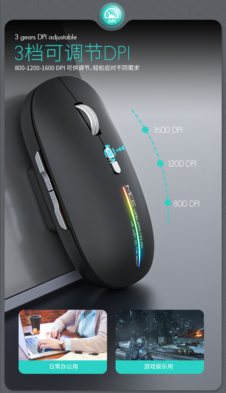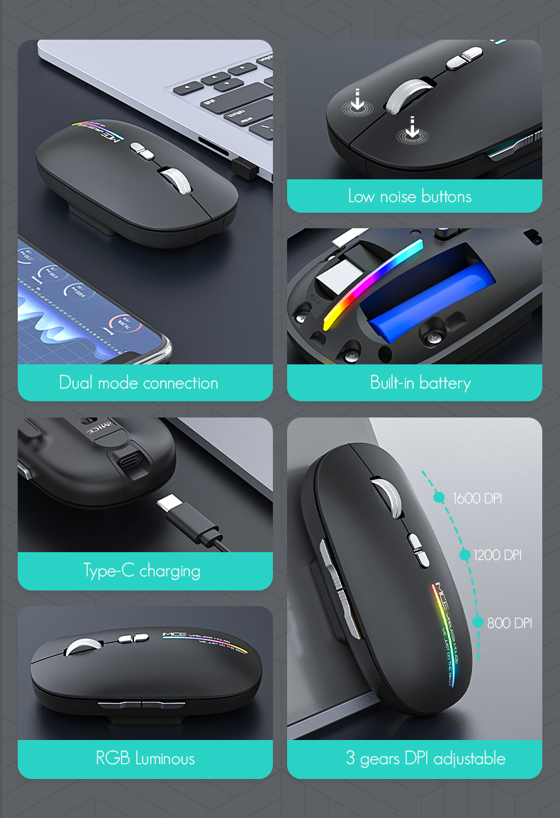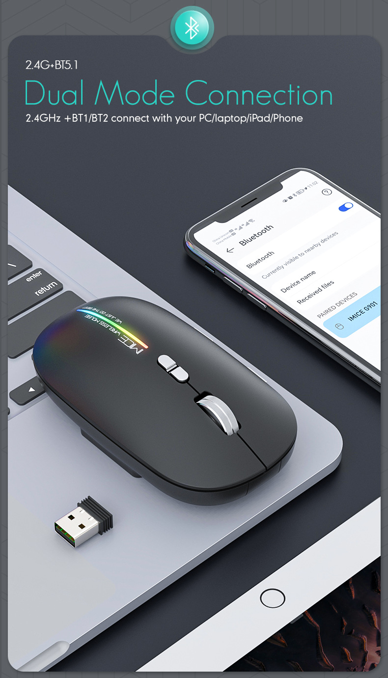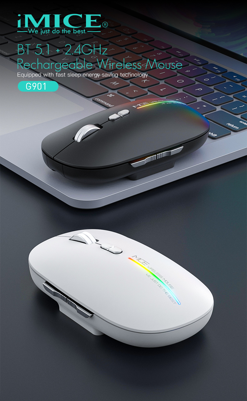 IMICE 공장 직접 공급 국경 간 블루투스 듀얼 모드 충전식 음소거 7 버튼 무선 게임 마우스 TYPE-C 인터페이스