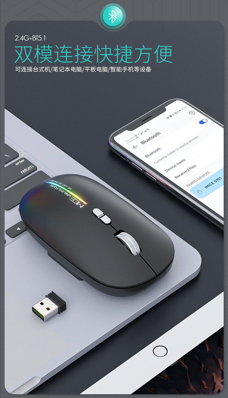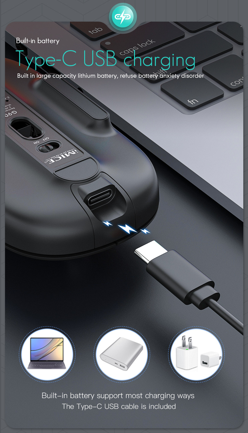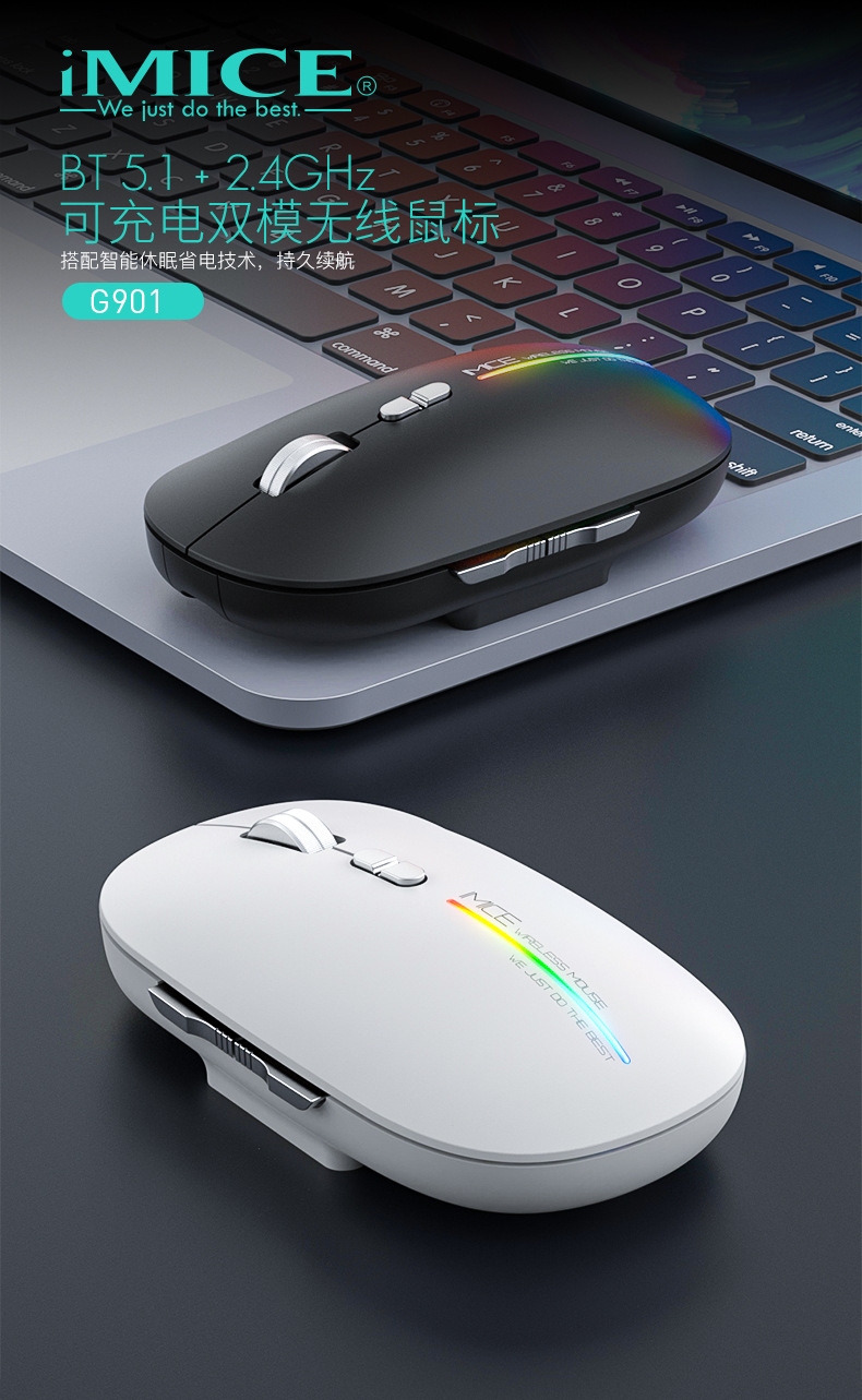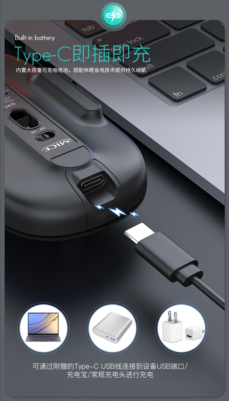 IMICE 공장 직접 공급 국경 간 블루투스 듀얼 모드 충전식 음소거 7 버튼 무선 게임 마우스 TYPE-C 인터페이스스토어 가기