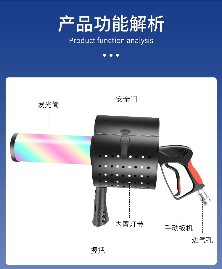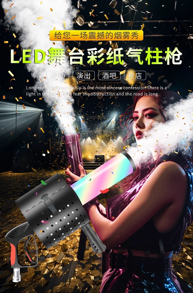 이첸 LED 컬러 종이 공기 칼럼 총 바 단계 휴대용 CO2 건조 얼음 총 대기 소품 이산화탄소 연기 기둥 종이스토어 가기