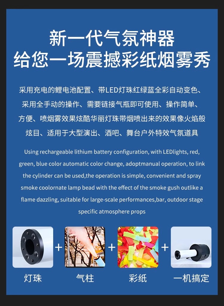 이첸 LED 컬러 종이 공기 칼럼 총 바 단계 휴대용 CO2 건조 얼음 총 대기 소품 이산화탄소 연기 기둥 종이