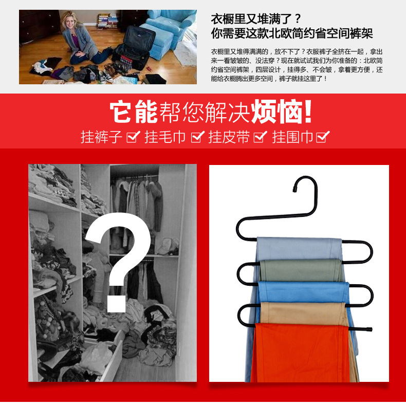 스테인레스 스틸 단철 바지 랙 멀티 레이어 매직 미끄럼 방지 S 모양의 바지 클립 걸이 다기능 옷장 보관스토어 가기