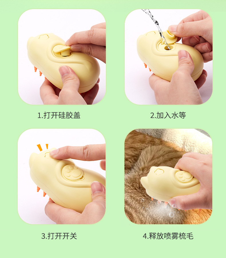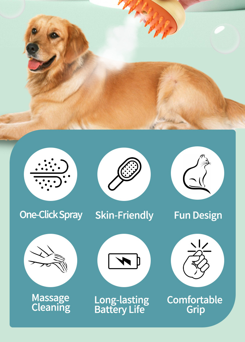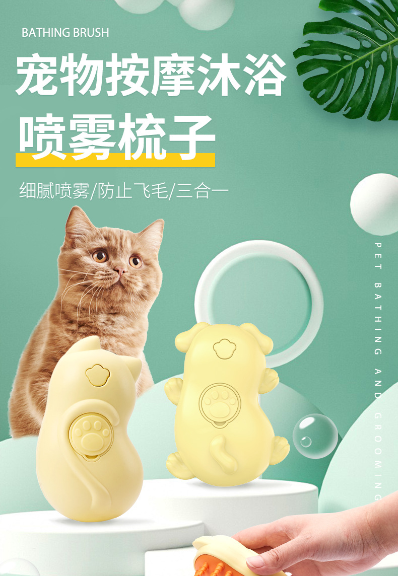 국경 간 전기 원 버튼 워시 프리 스프레이 브러시 청소 제모 빗 고양이와 개 비행 방지 헤어 충전 애완 동물 스프레이 마사지 빗스토어 가기