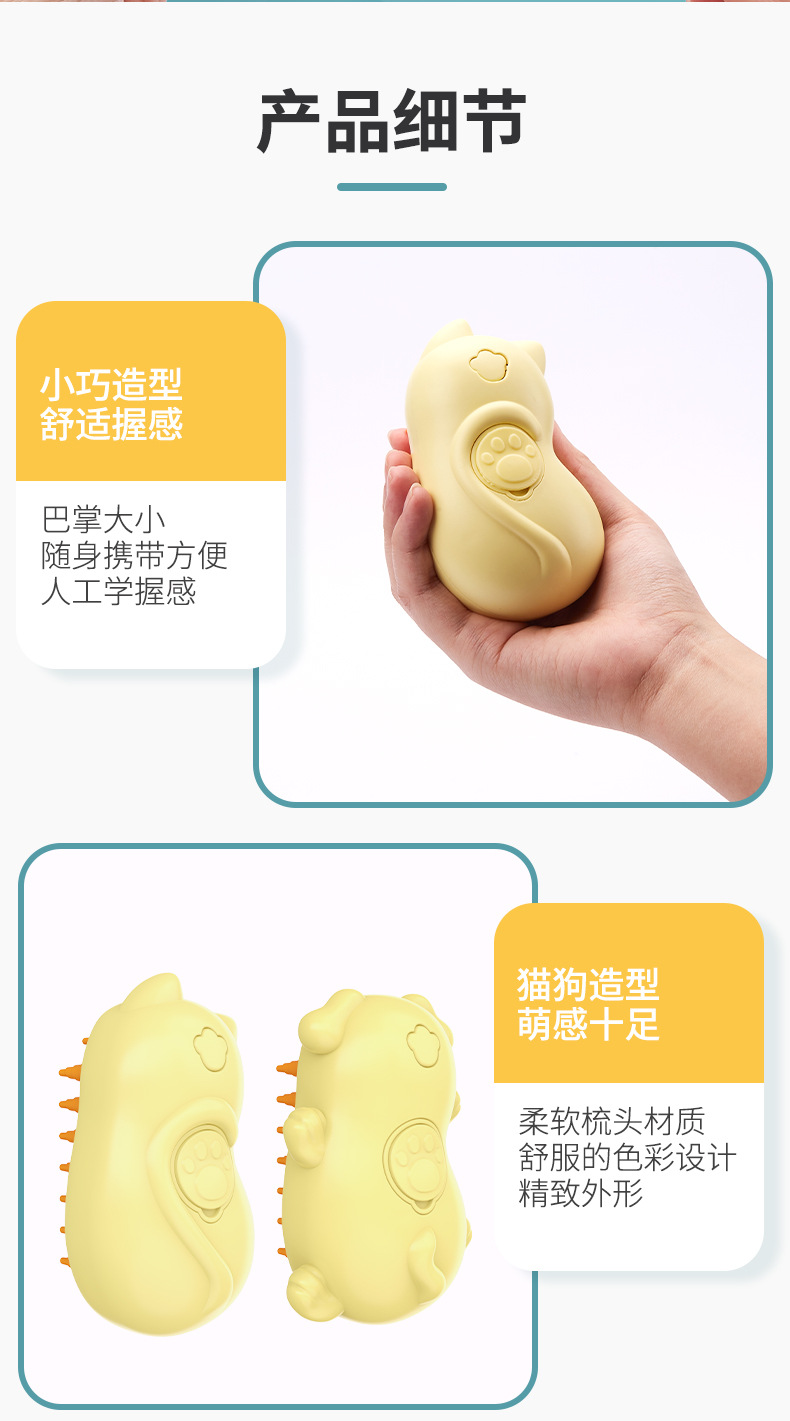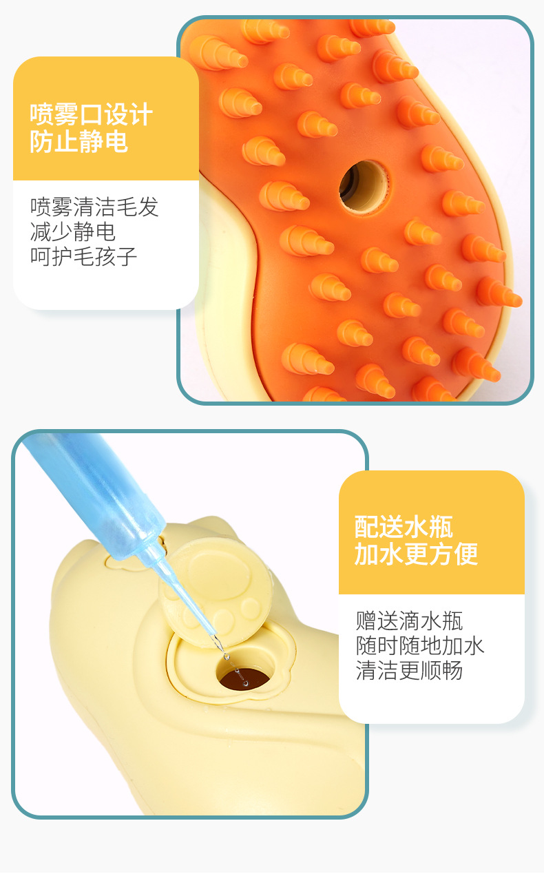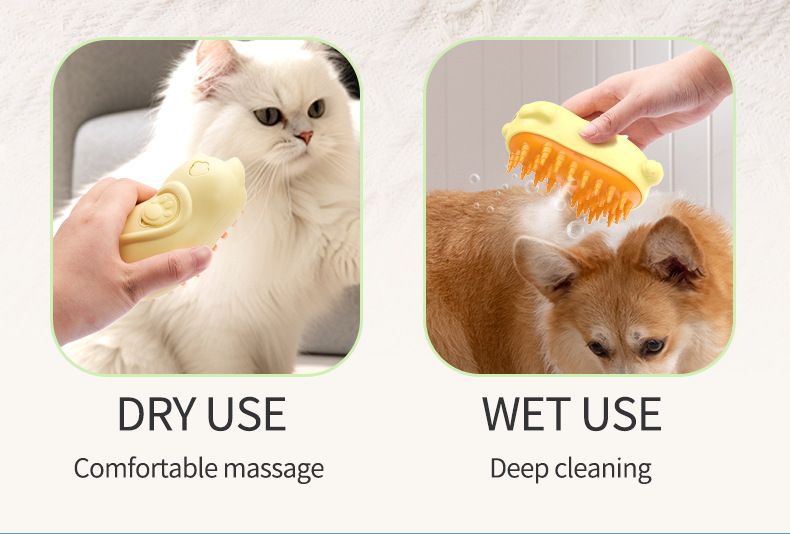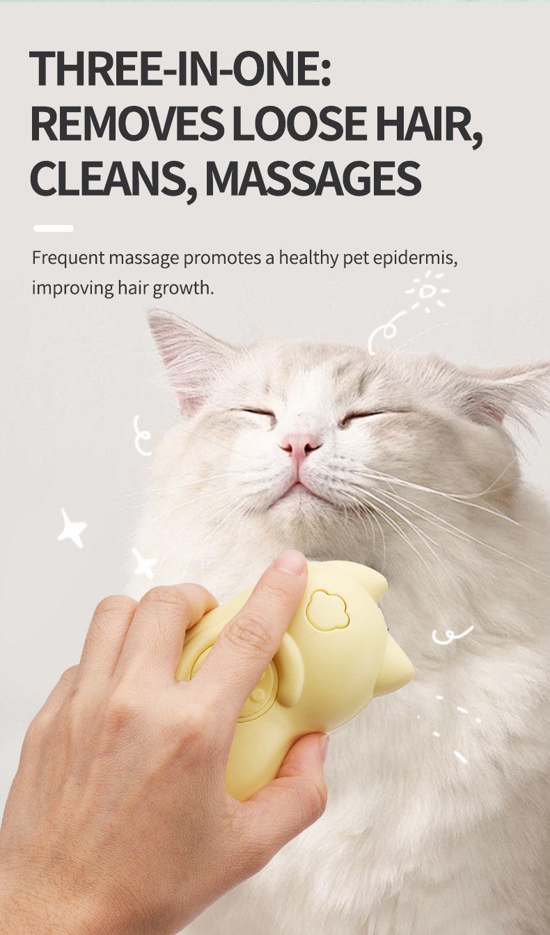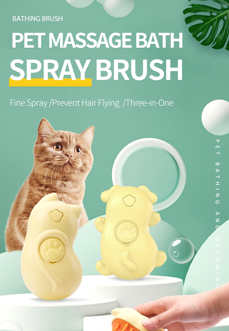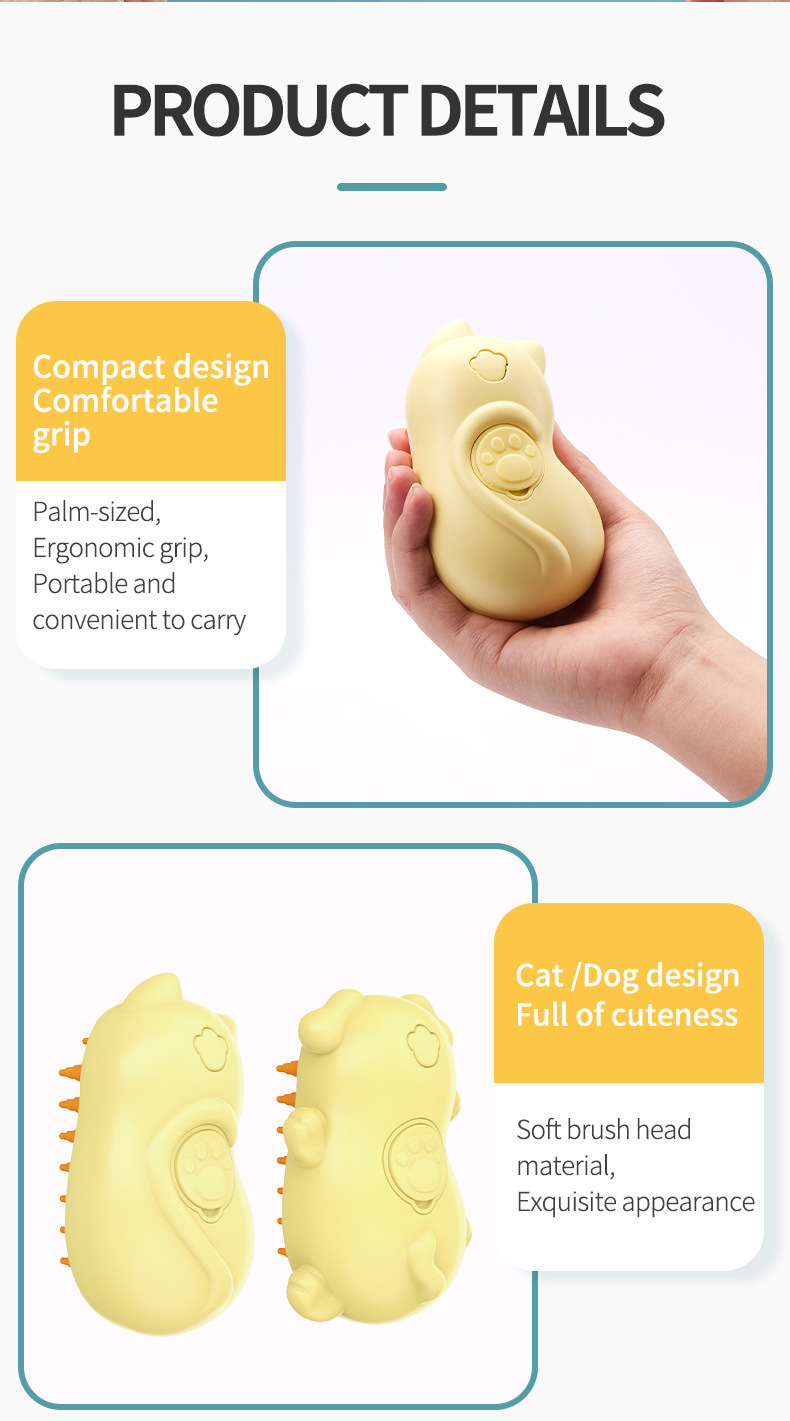 • 고양이 모양의 스프레이 애완 동물 빗 (노란색)