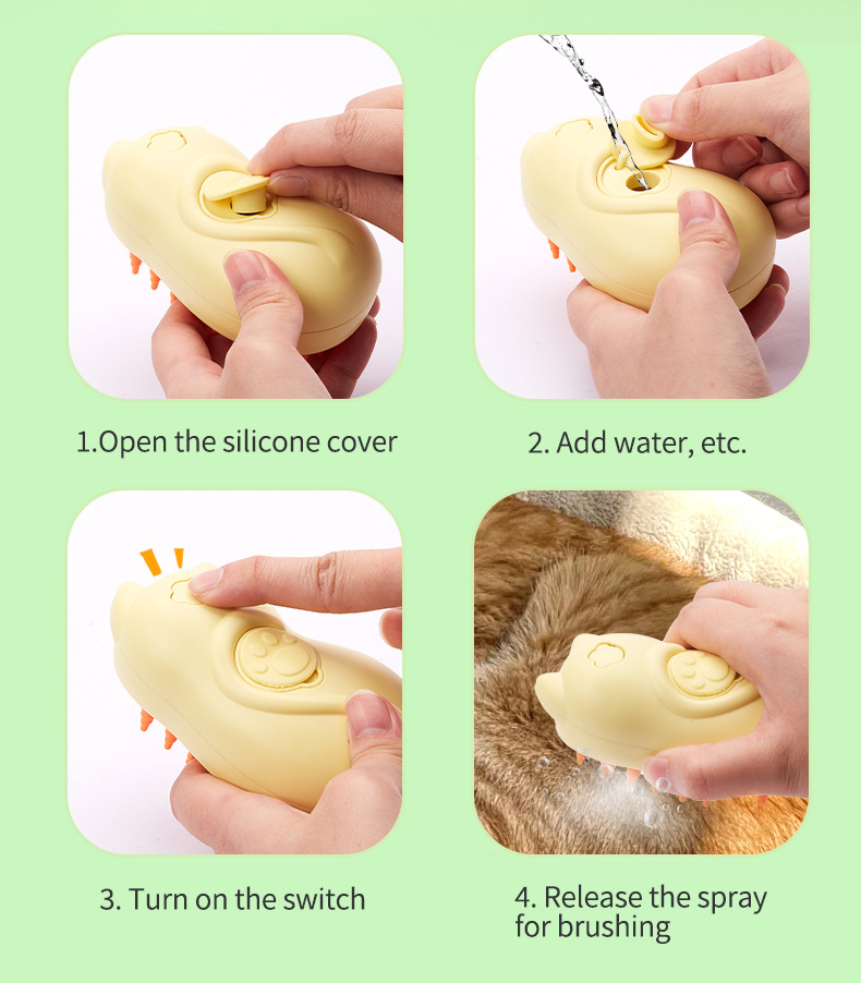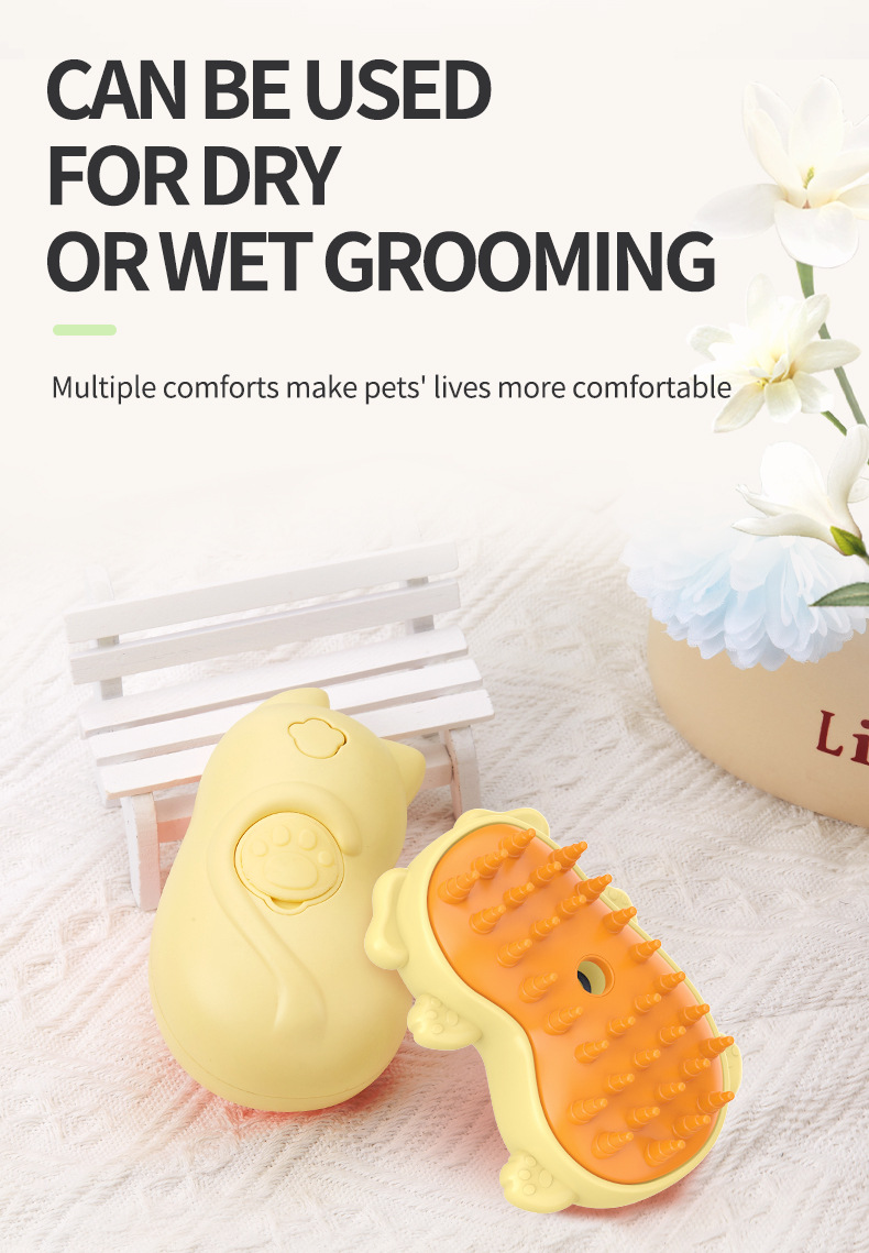 • 개 모양의 스프레이 애완 동물 빗 (노란색)