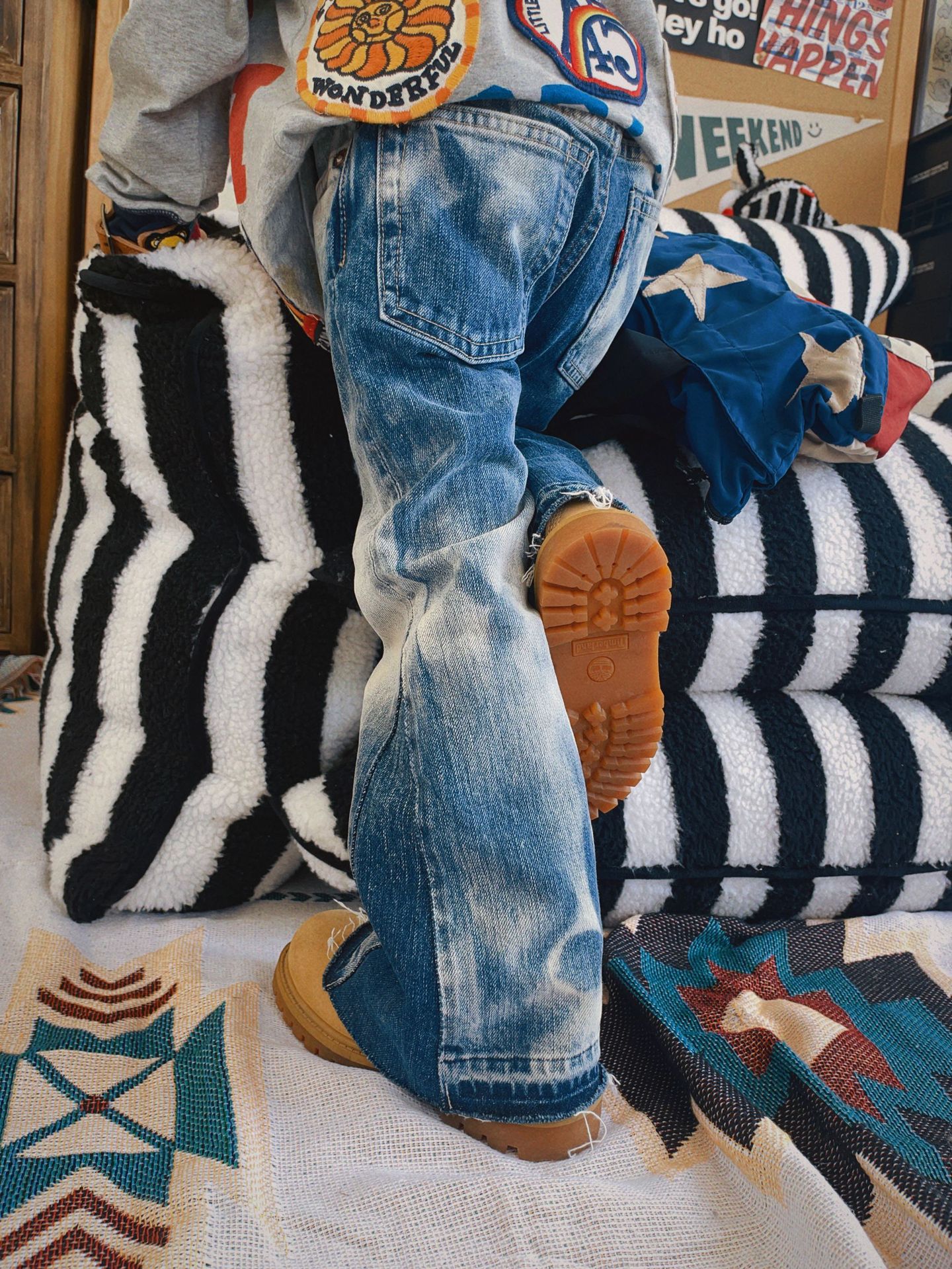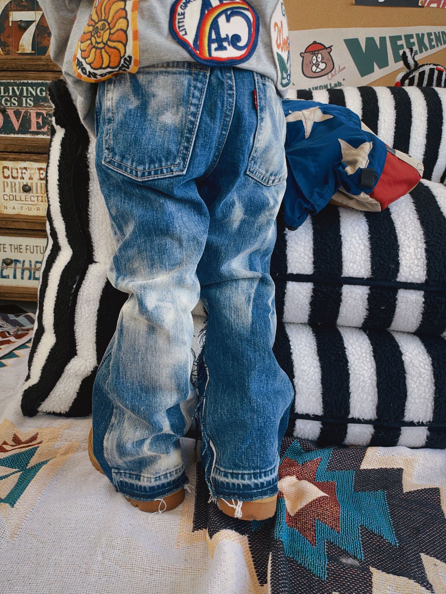 24SS 봄과 가을 소녀 청바지 일본 스타일 빈티지 워시 워터 플레어 청바지스토어 가기
