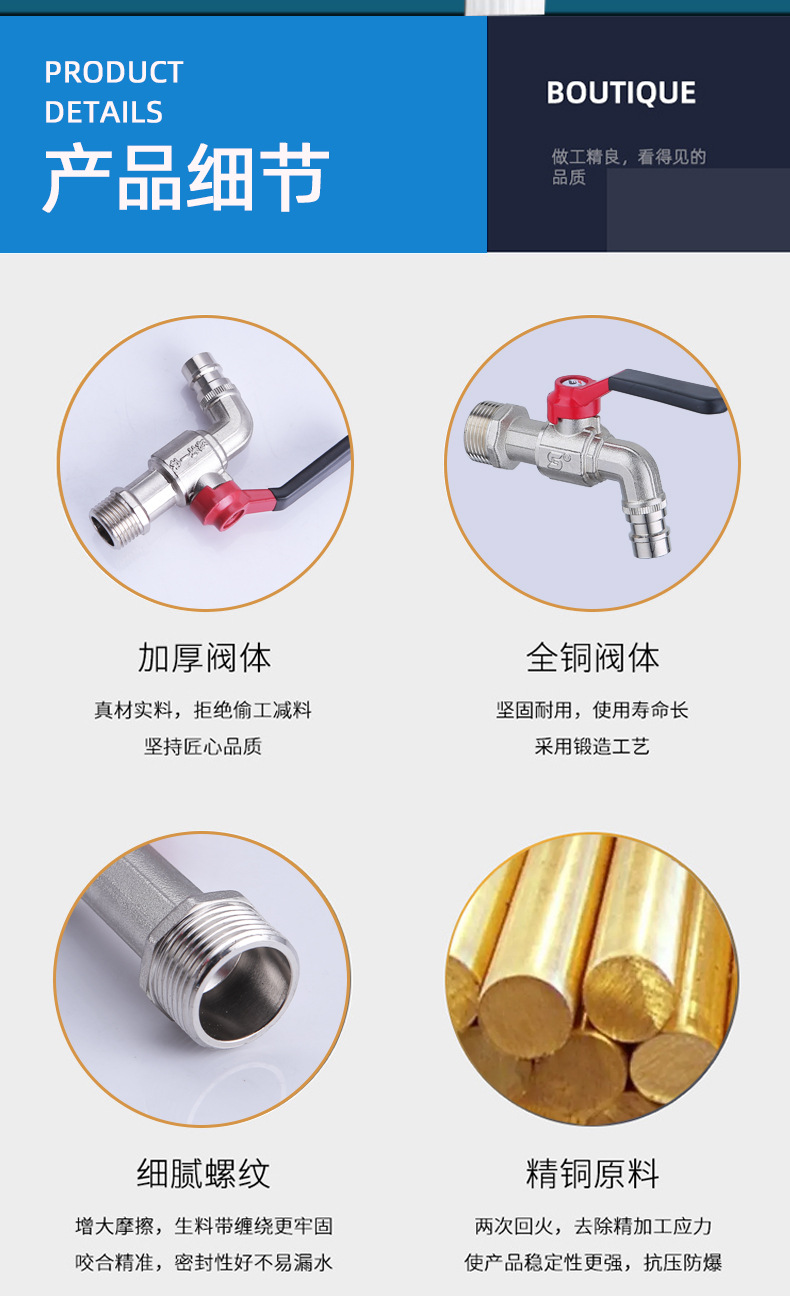 두꺼운 구리 큰 흐름 수도꼭지 볼로드 통합 볼 밸브 코어 46 포인트 세탁기 수도꼭지 빠른 개방 버클 물스토어 가기