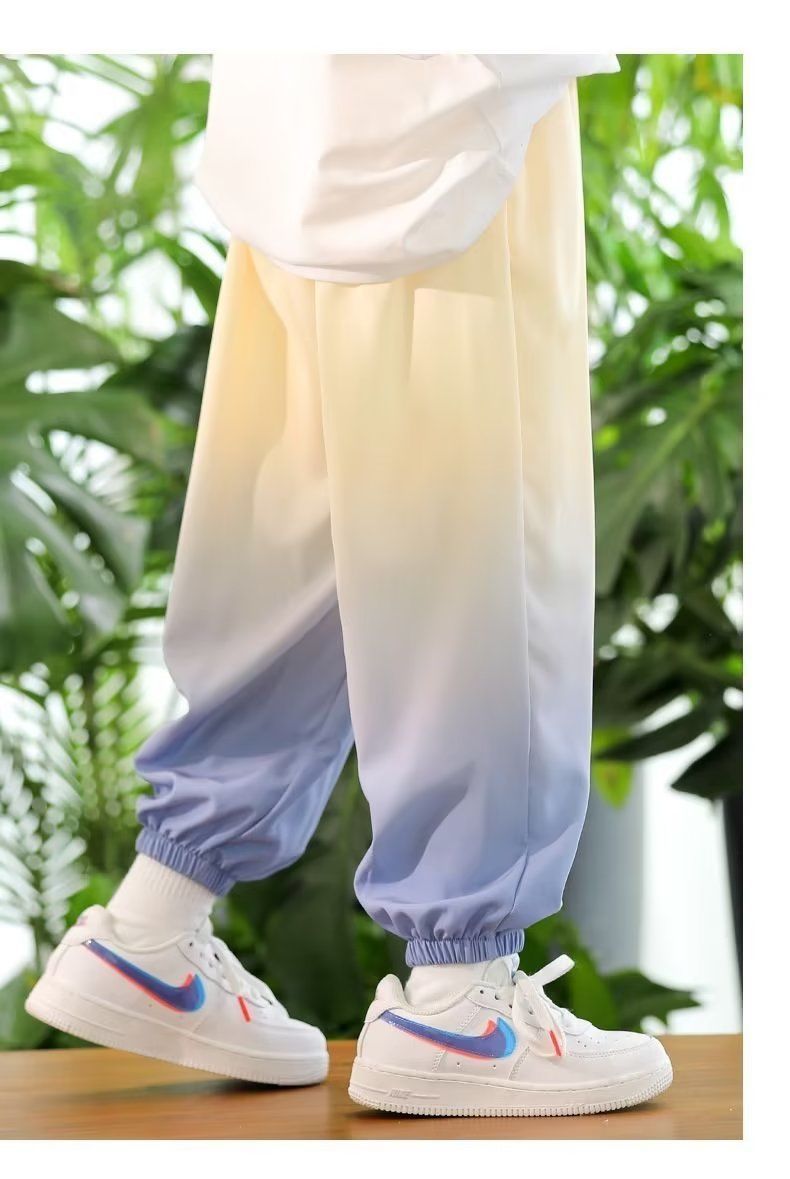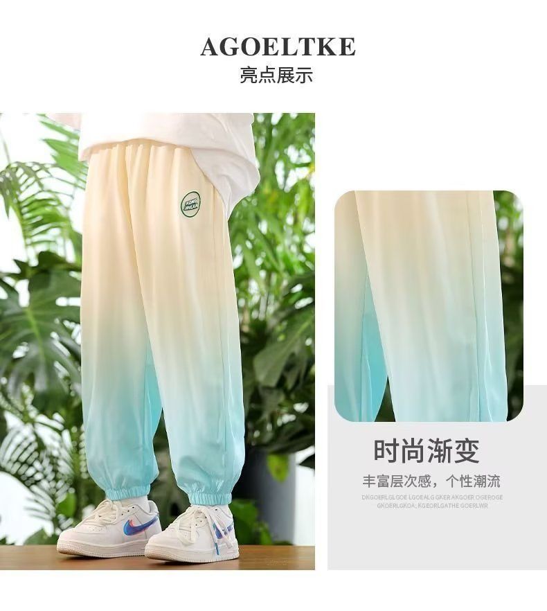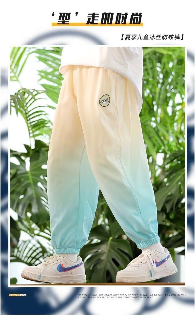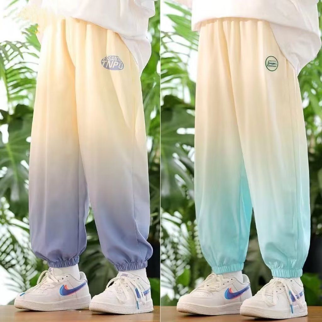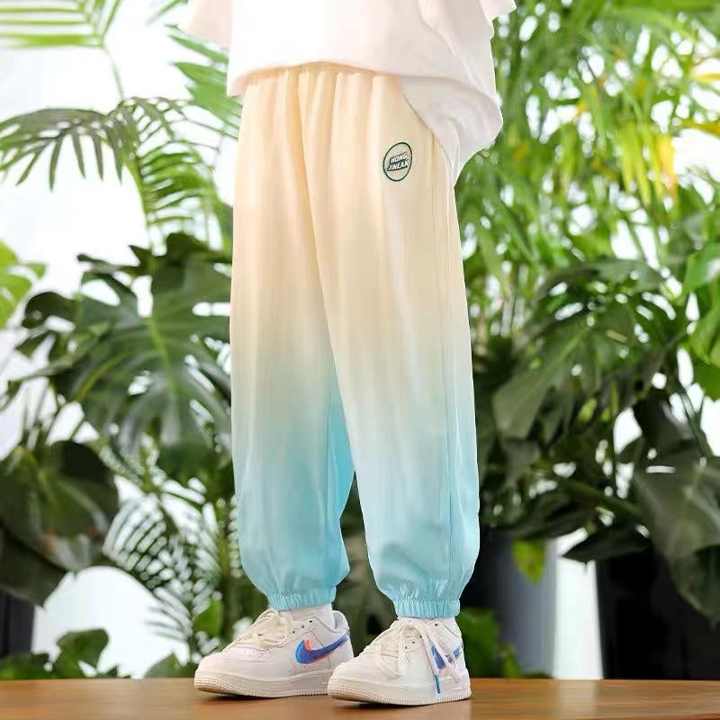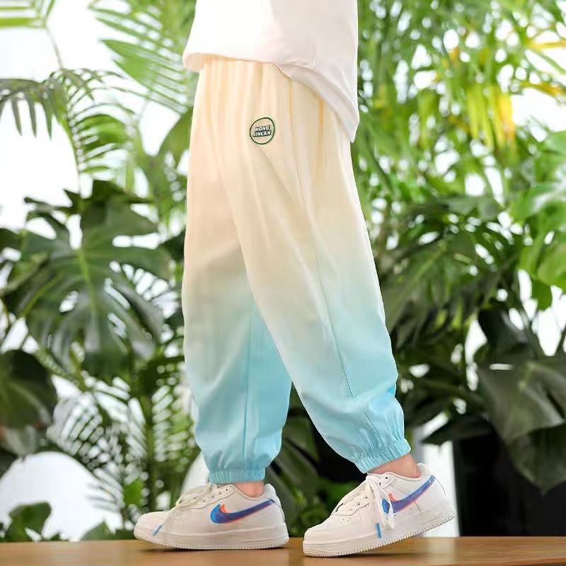 남학생 여름 얇은 모기 방지 바지 어린이 그라디언트 아이스 실크 바지 남성과 여성의 올 매치 캐주얼 빠른 건조 바지 패션스토어 가기