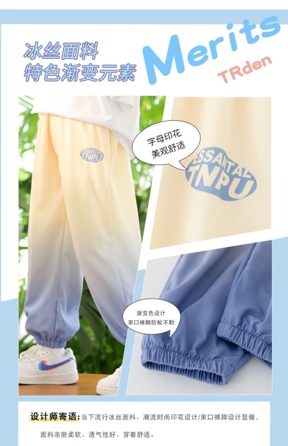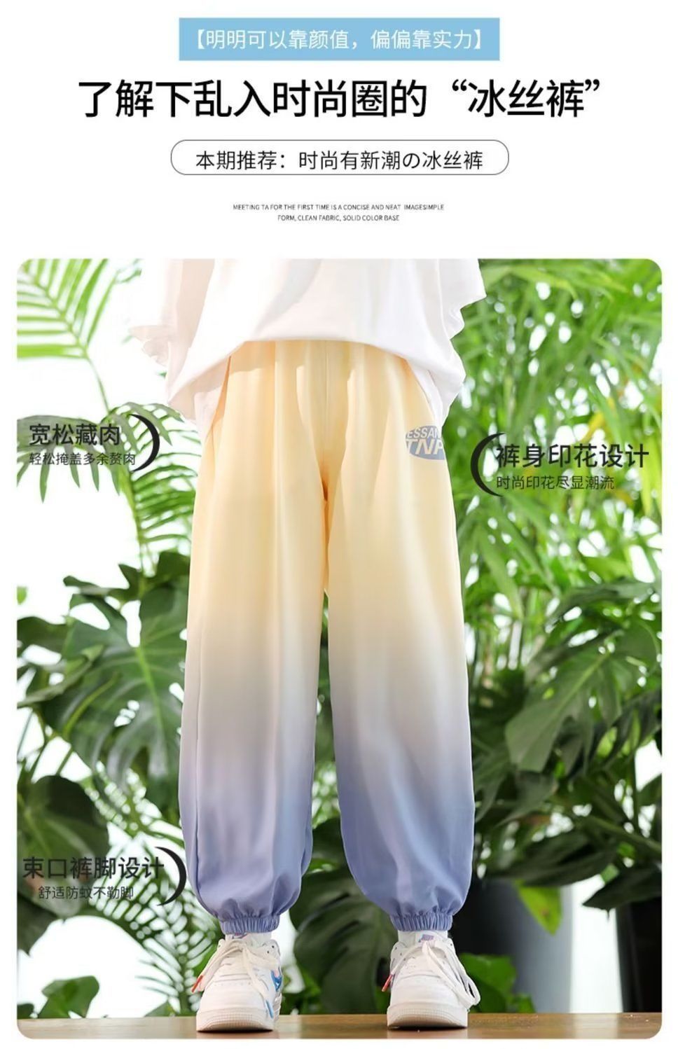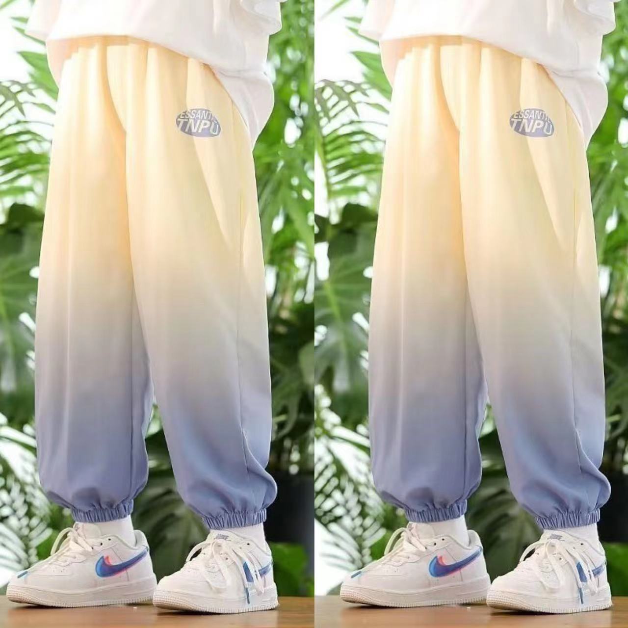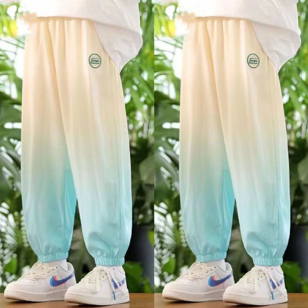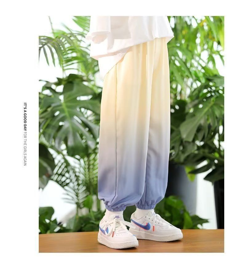 남학생 여름 얇은 모기 방지 바지 어린이 그라디언트 아이스 실크 바지 남성과 여성의 올 매치 캐주얼 빠른 건조 바지 패션스토어 가기
