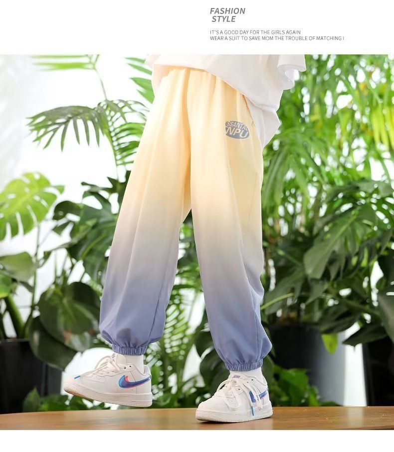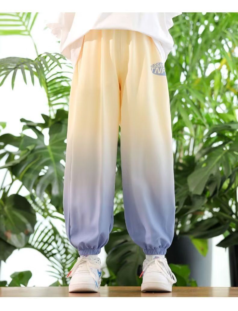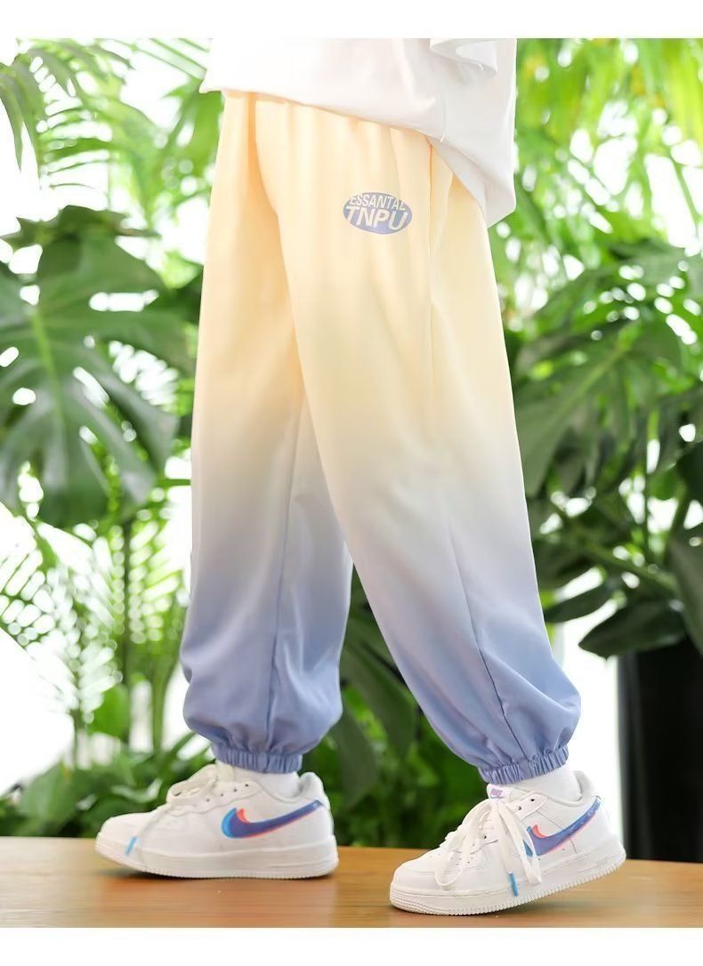 남학생 여름 얇은 모기 방지 바지 어린이 그라디언트 아이스 실크 바지 남성과 여성의 올 매치 캐주얼 빠른 건조 바지 패션