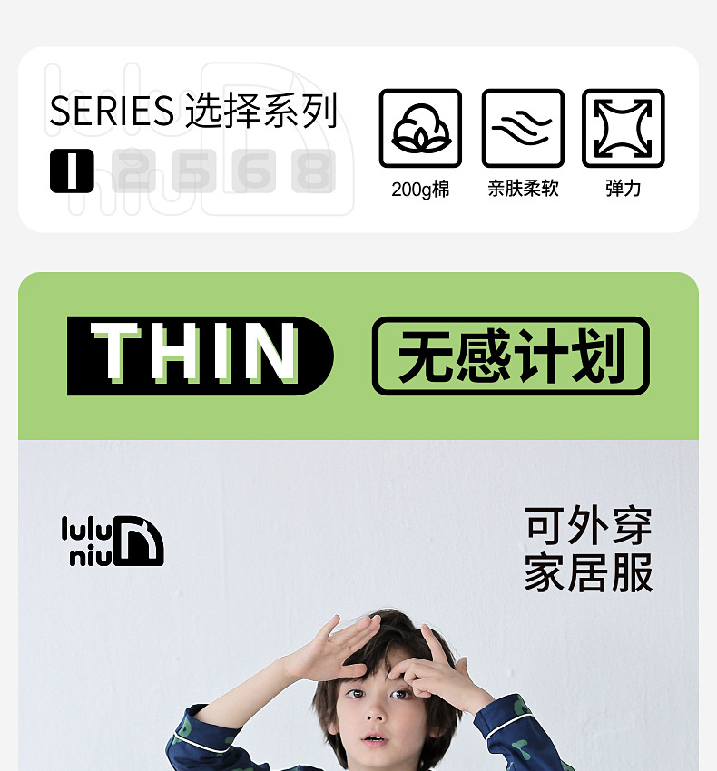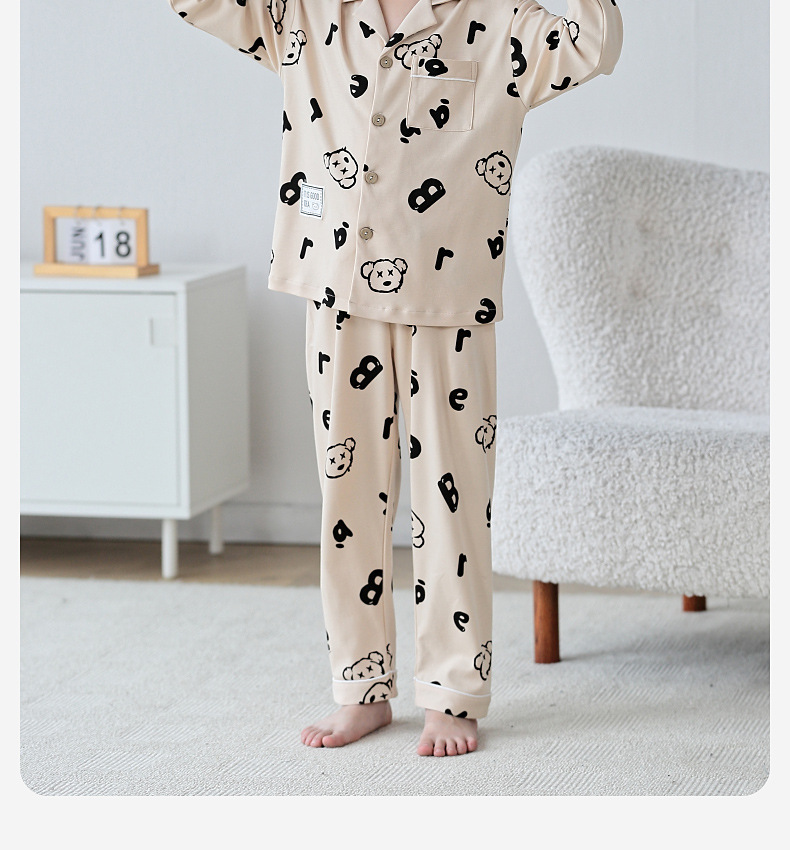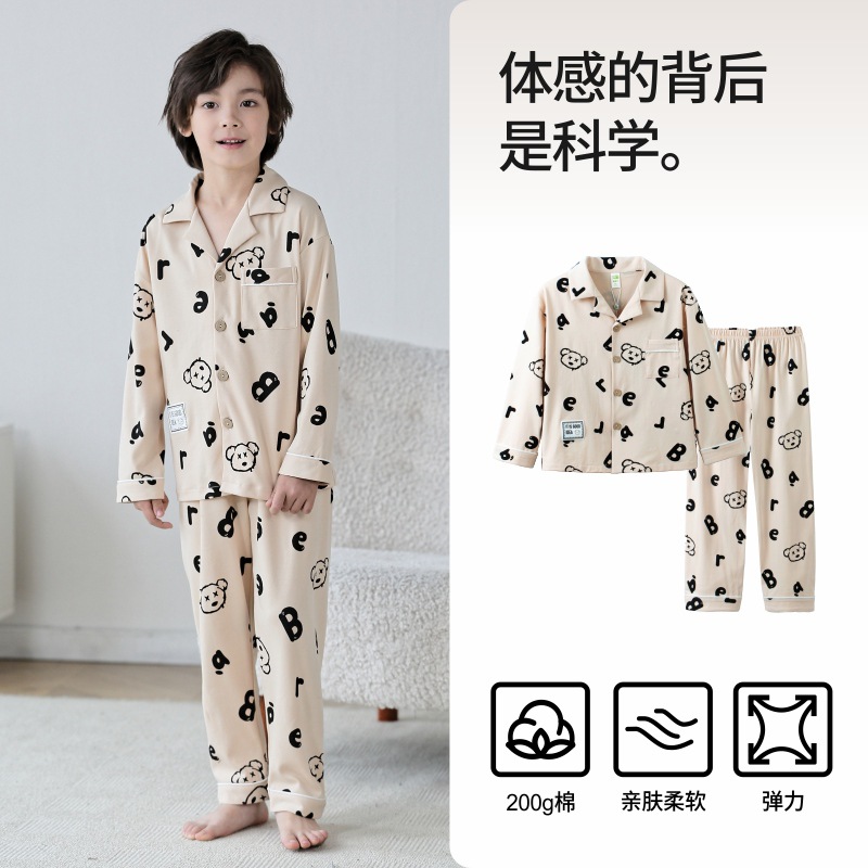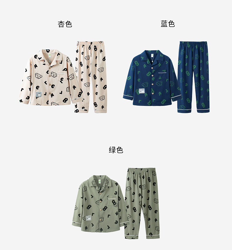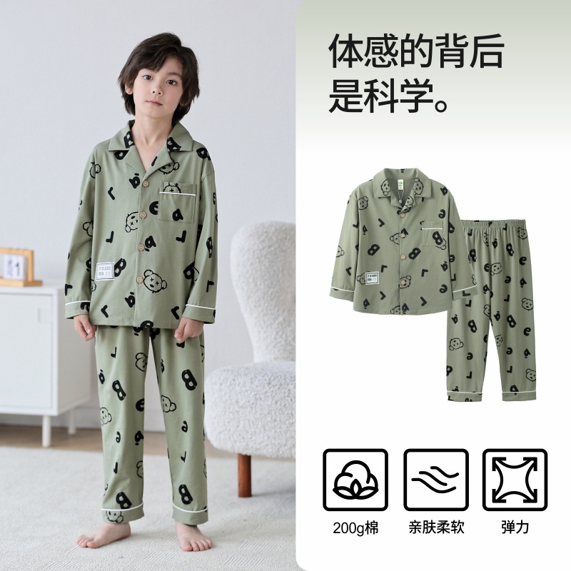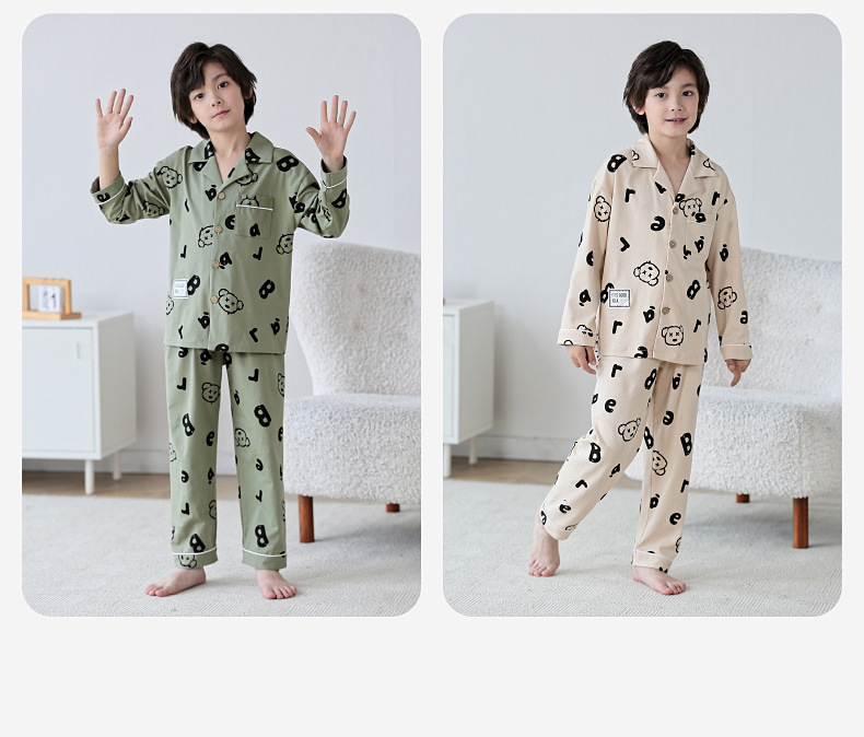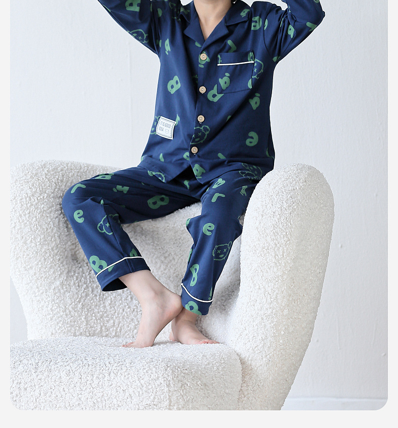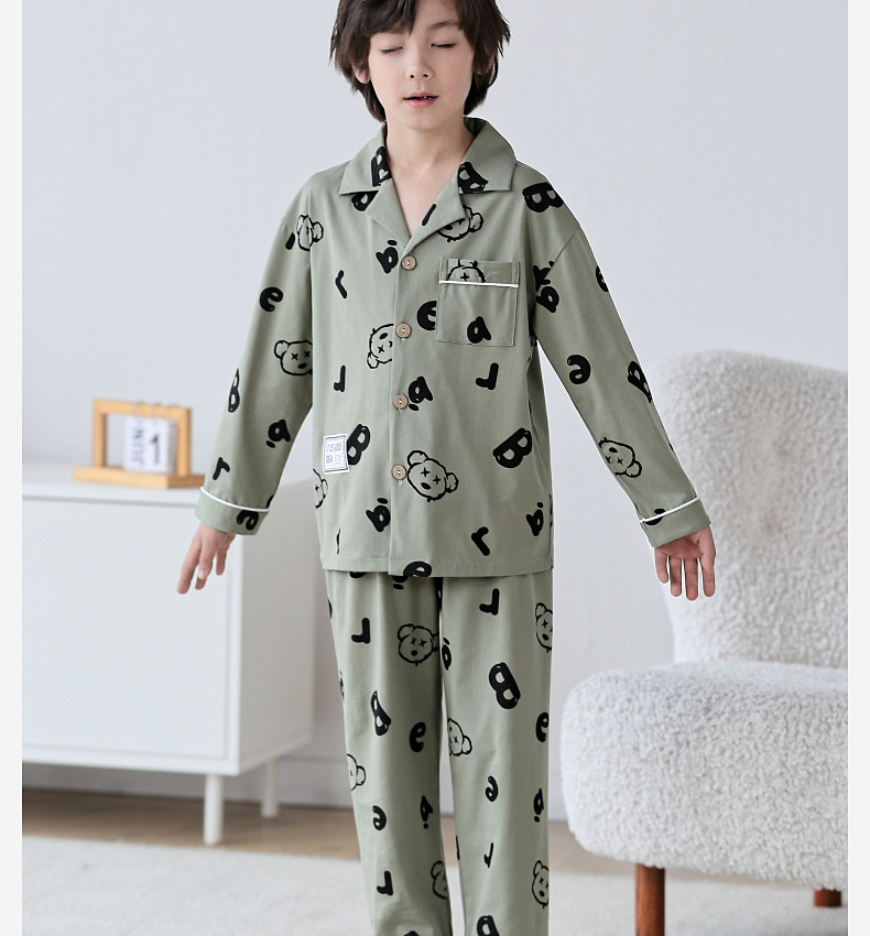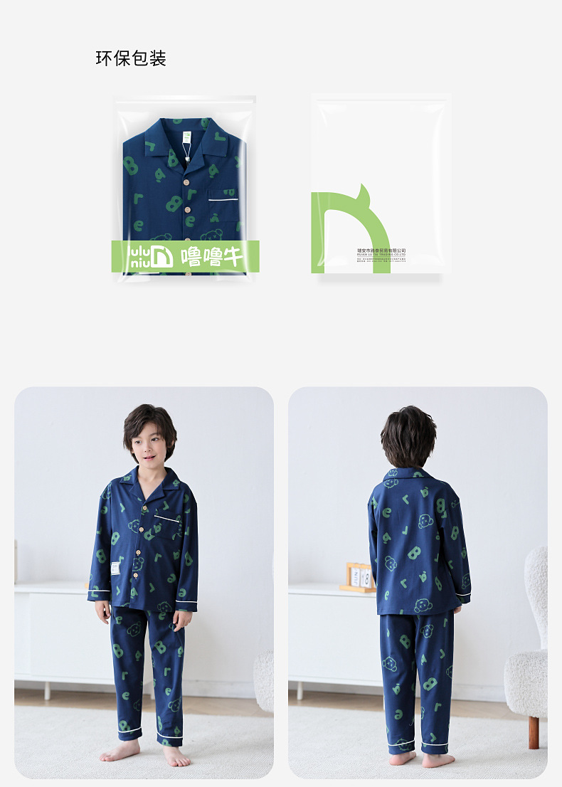 Lulu Niu 2024 봄 어린이 잠옷 소년 면화 긴팔 어린이 봄과 가을 중년 어린이 소년 잠옷 세트