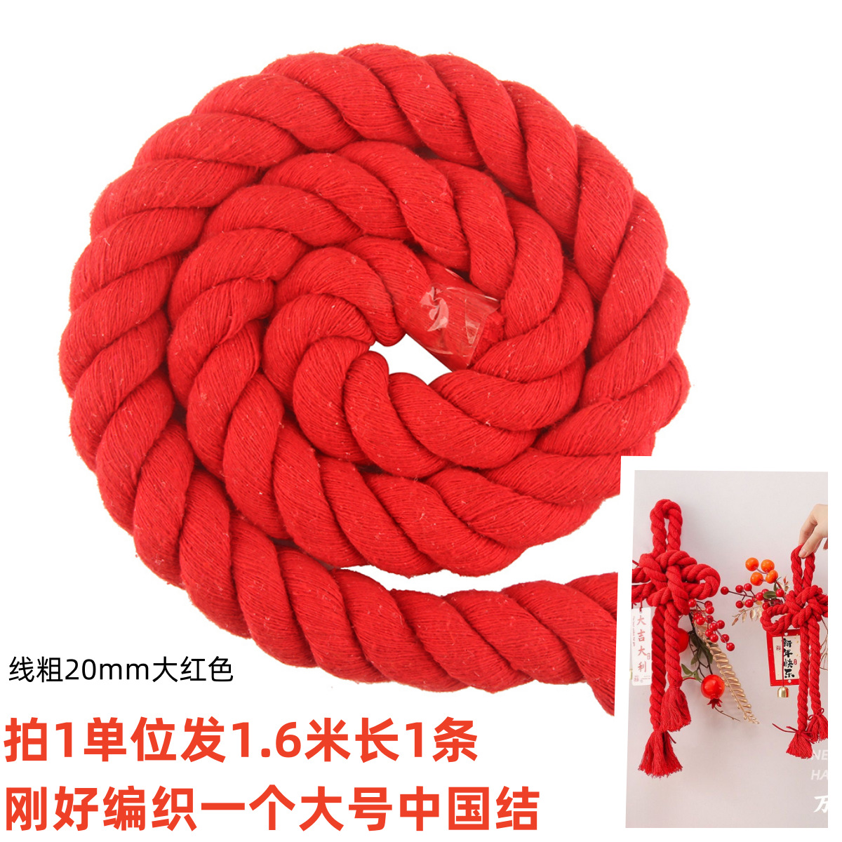 오늘의 재고 20mm 컬러 코튼 로프 손으로 짠 만 단어 매듭 로프 중국 매듭 로프 2cm 두께의 빨간 로프