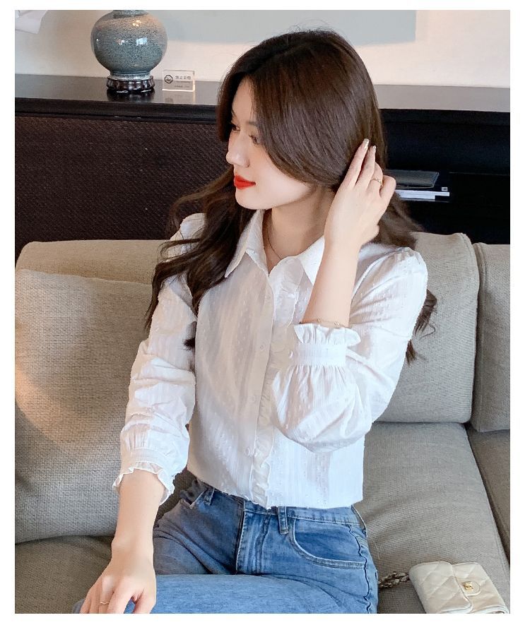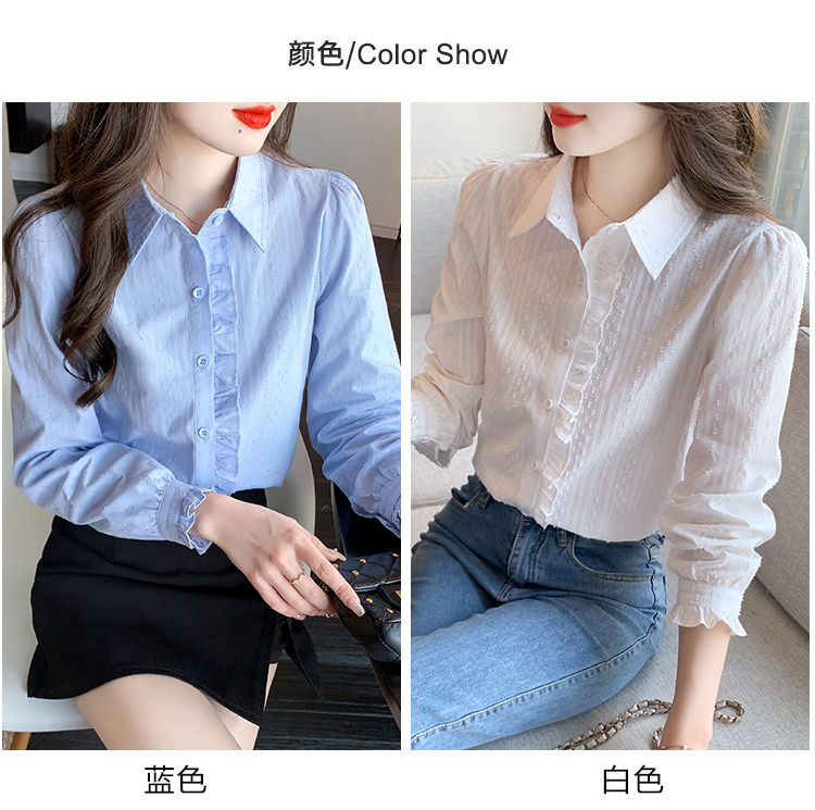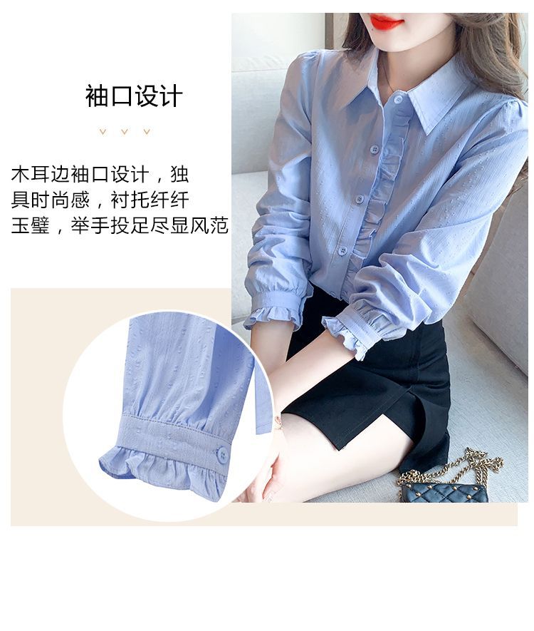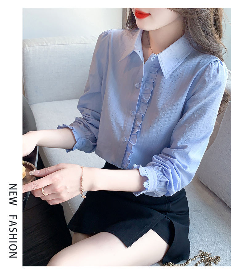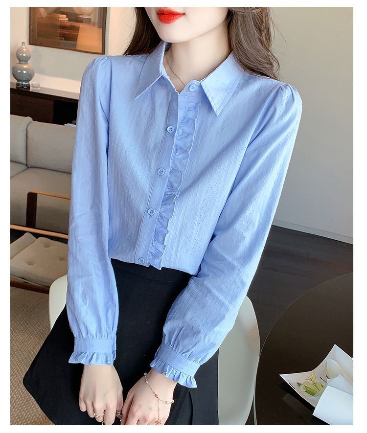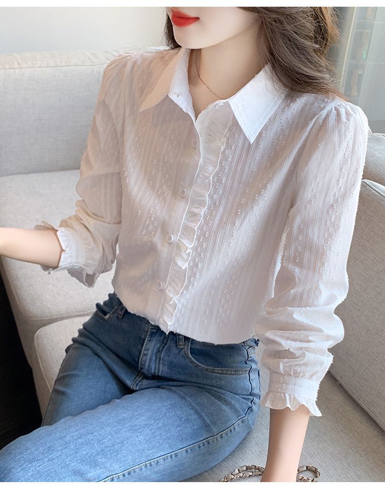 2026년 봄/가을 신상 여성 패션 만능 코튼 셔츠, 여성스럽고 세련된 면 폴로 칼라 긴팔 상의스토어 가기