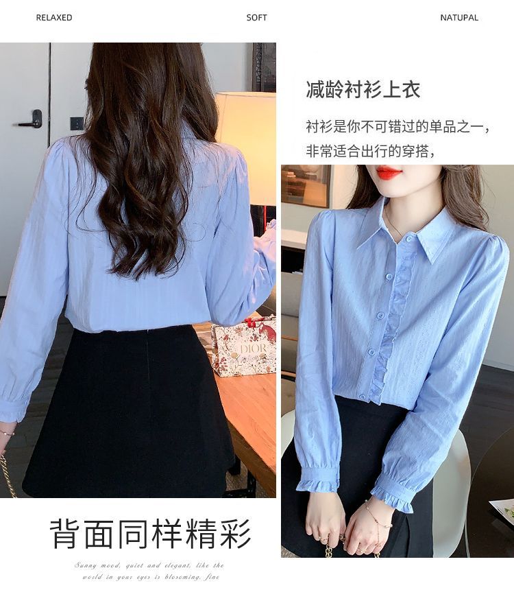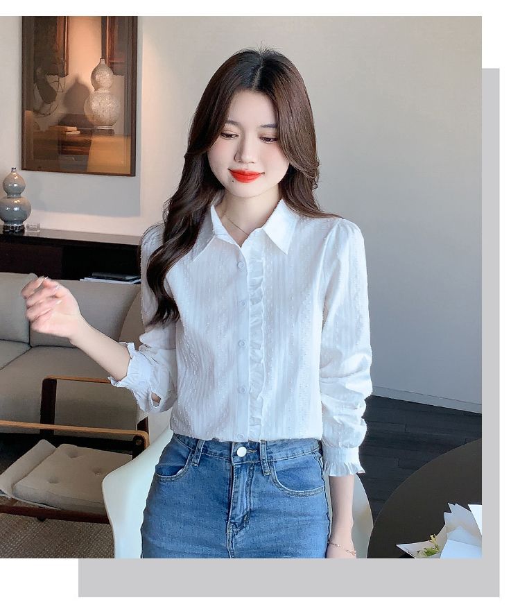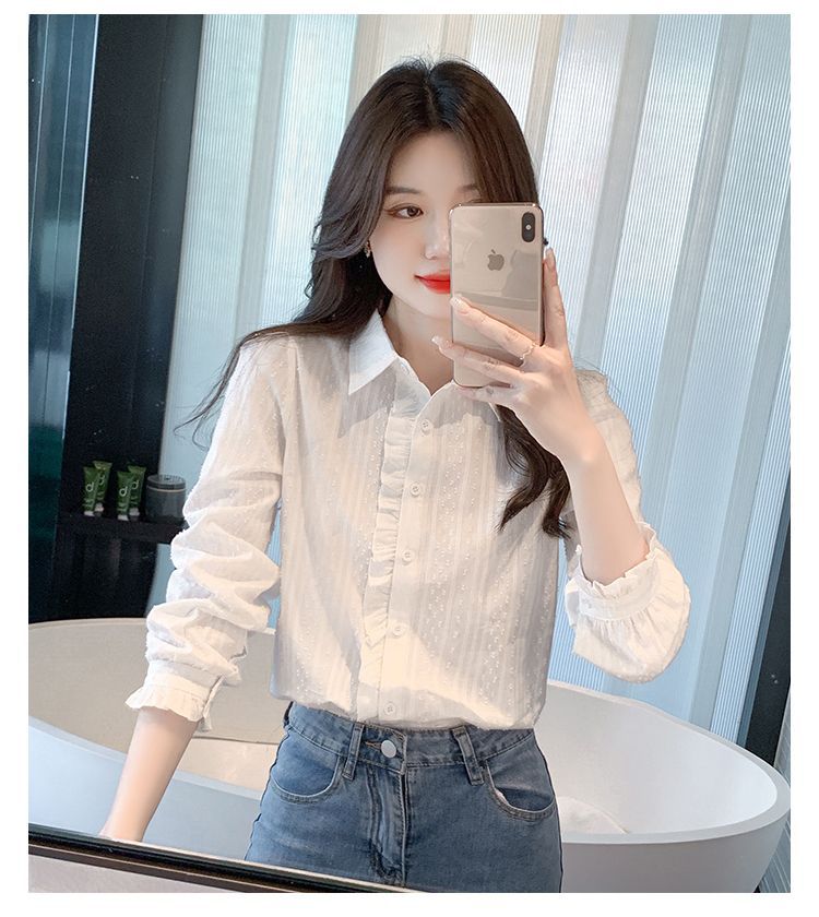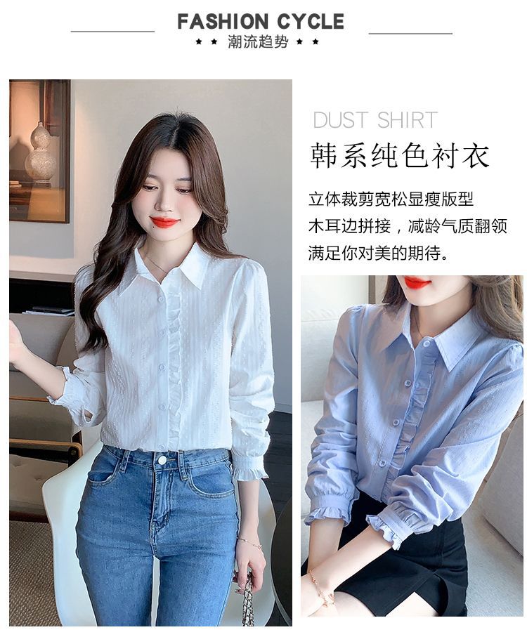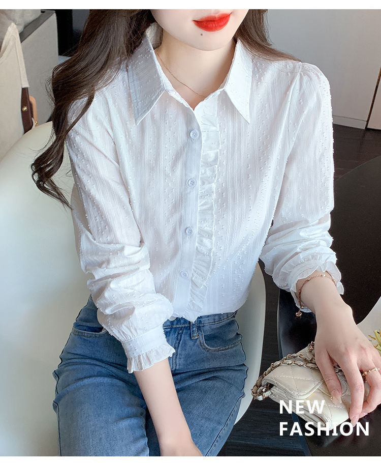 2026년 봄/가을 신상 여성 패션 만능 코튼 셔츠, 여성스럽고 세련된 면 폴로 칼라 긴팔 상의스토어 가기