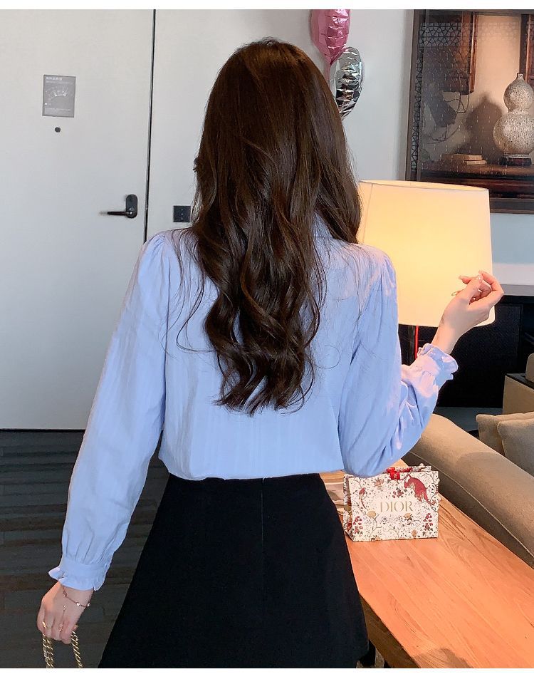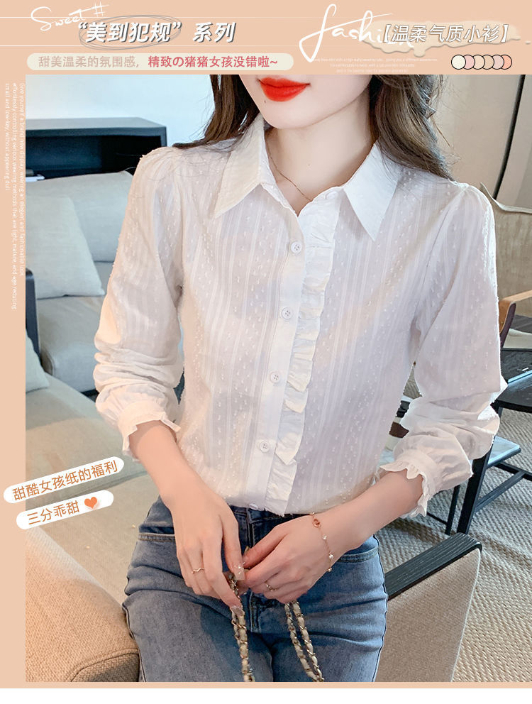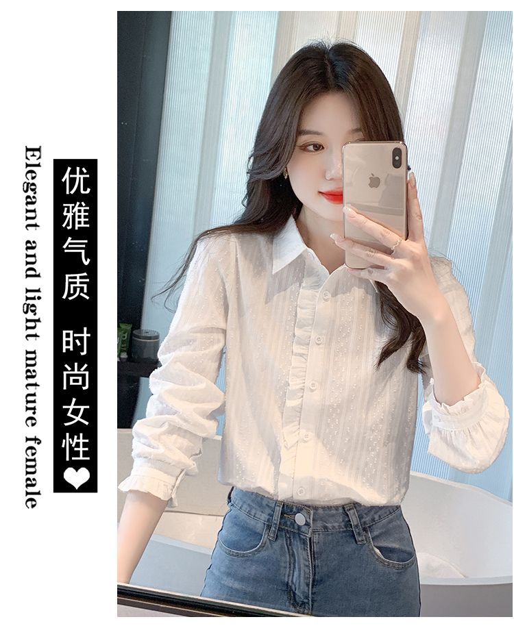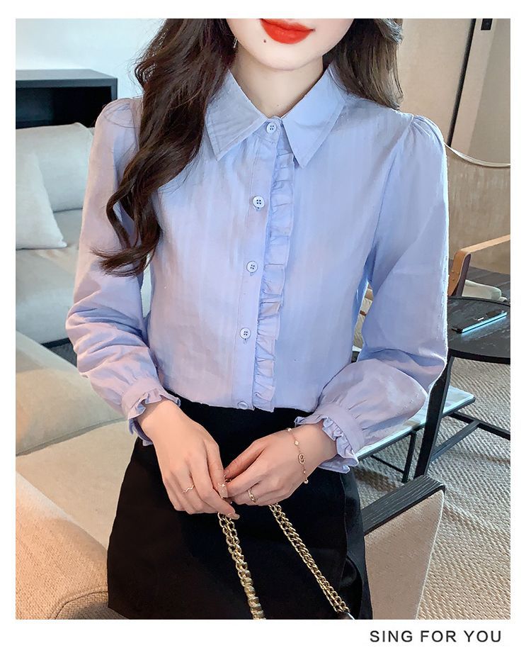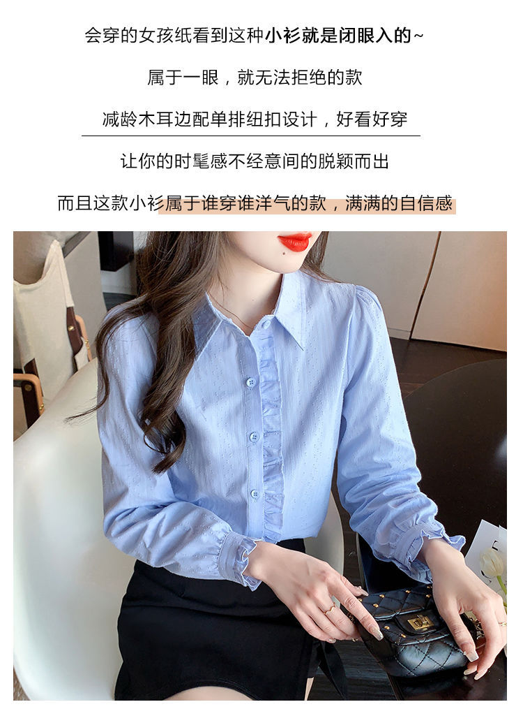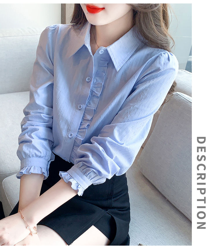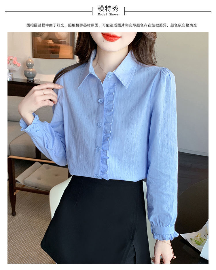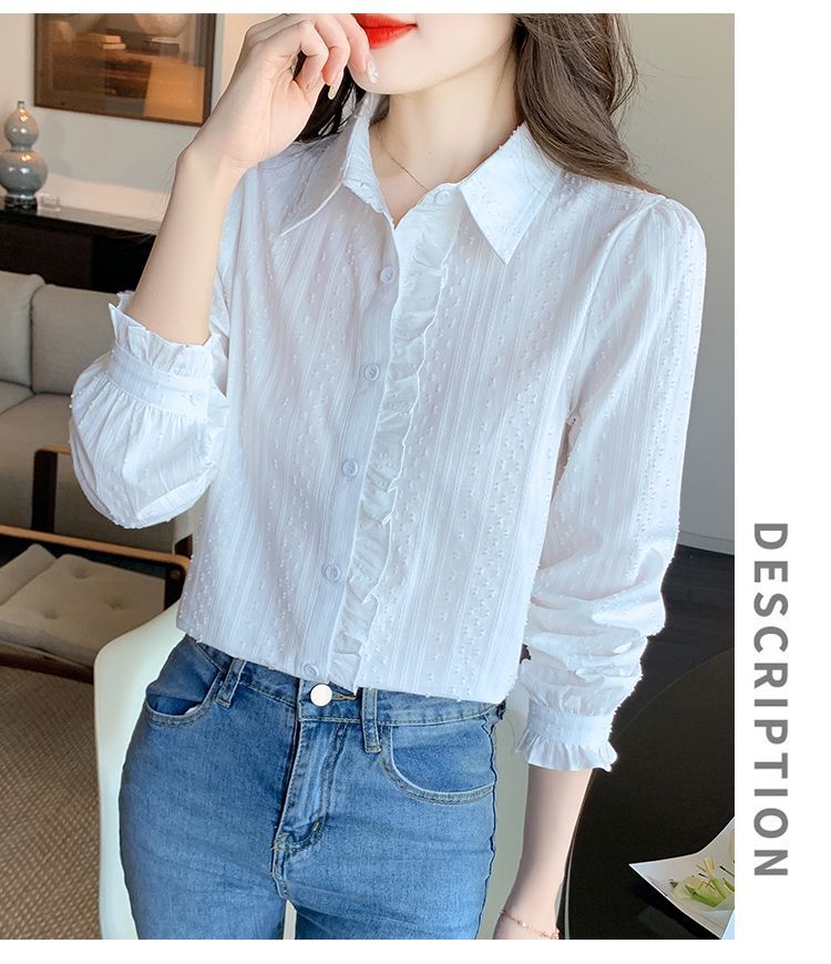 2026년 봄/가을 신상 여성 패션 만능 코튼 셔츠, 여성스럽고 세련된 면 폴로 칼라 긴팔 상의