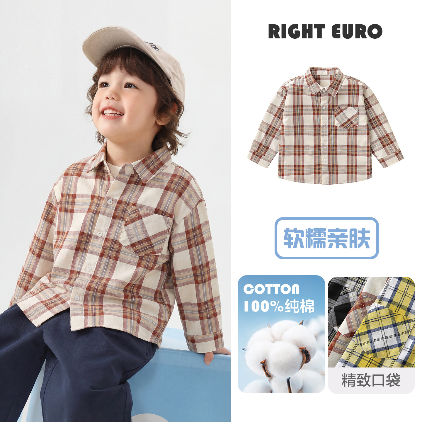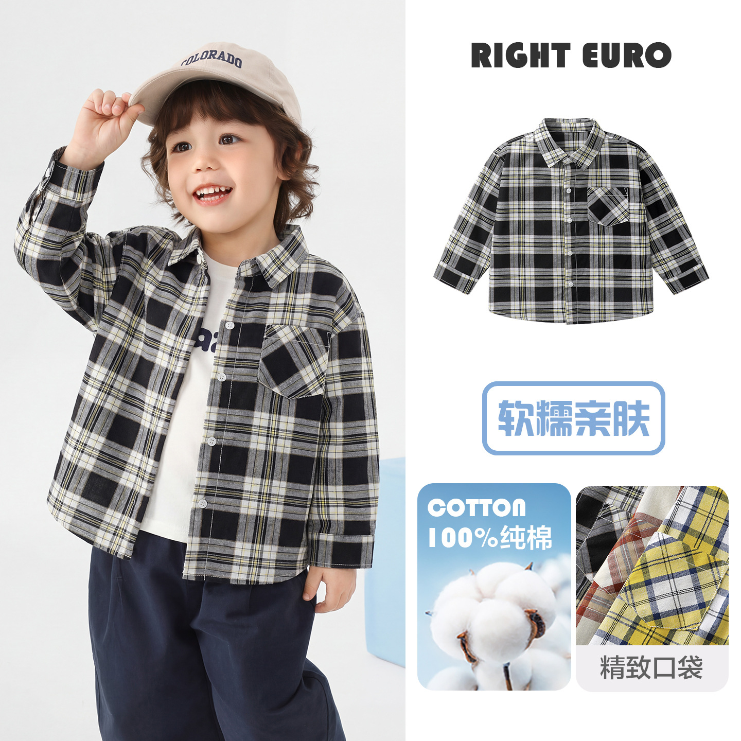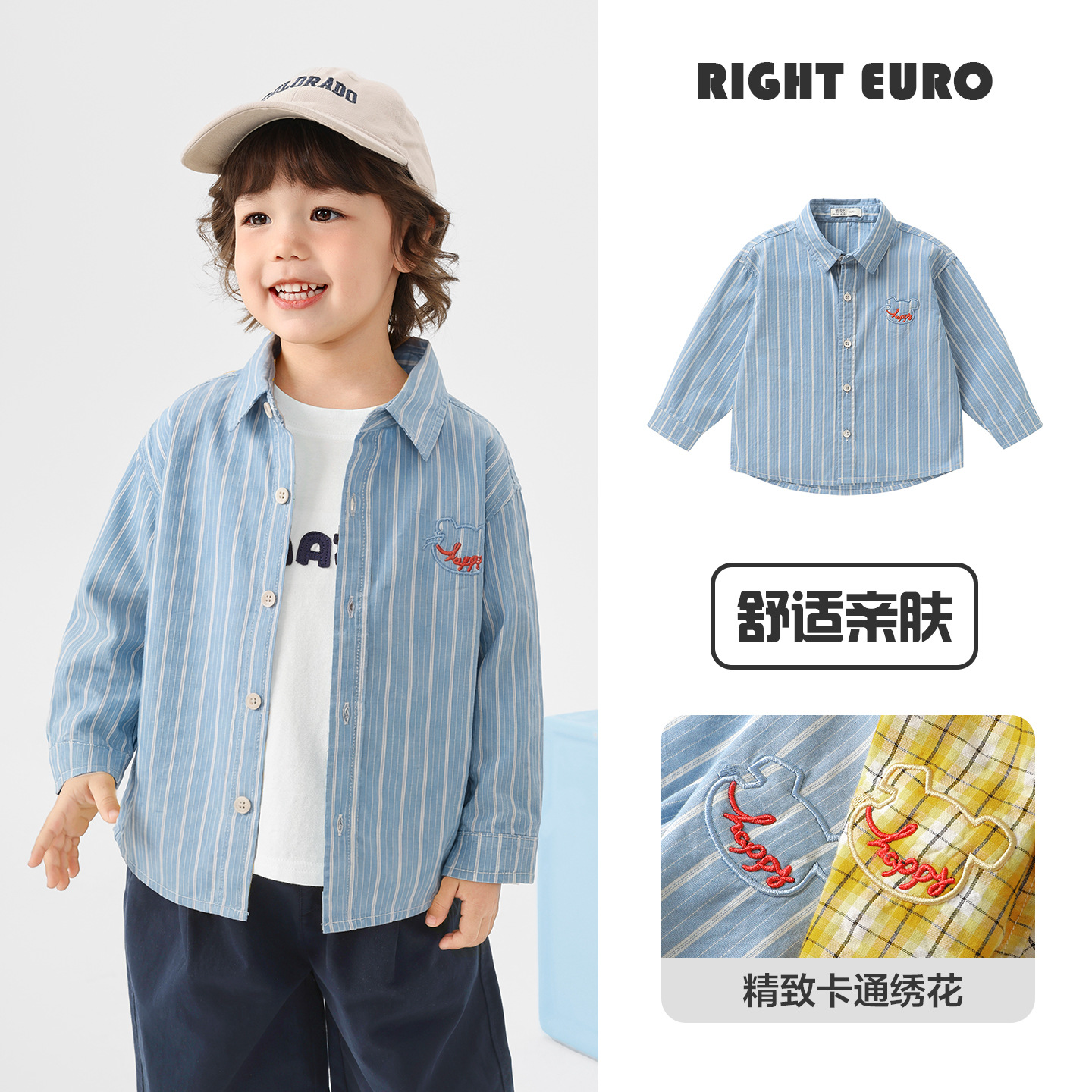 유럽풍 남아 긴팔 셔츠, 봄 신상 아동복, 유아용 셔츠, 초봄 상의, 봄 가을 스타일 트렌디