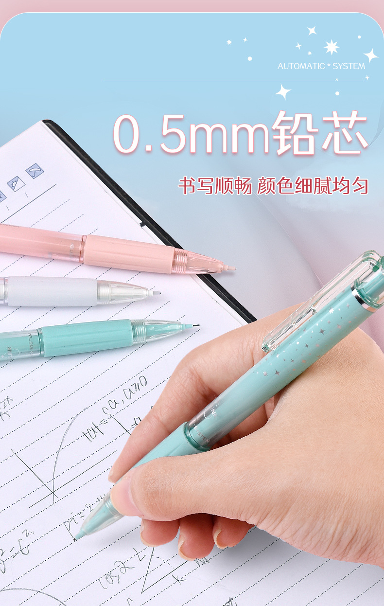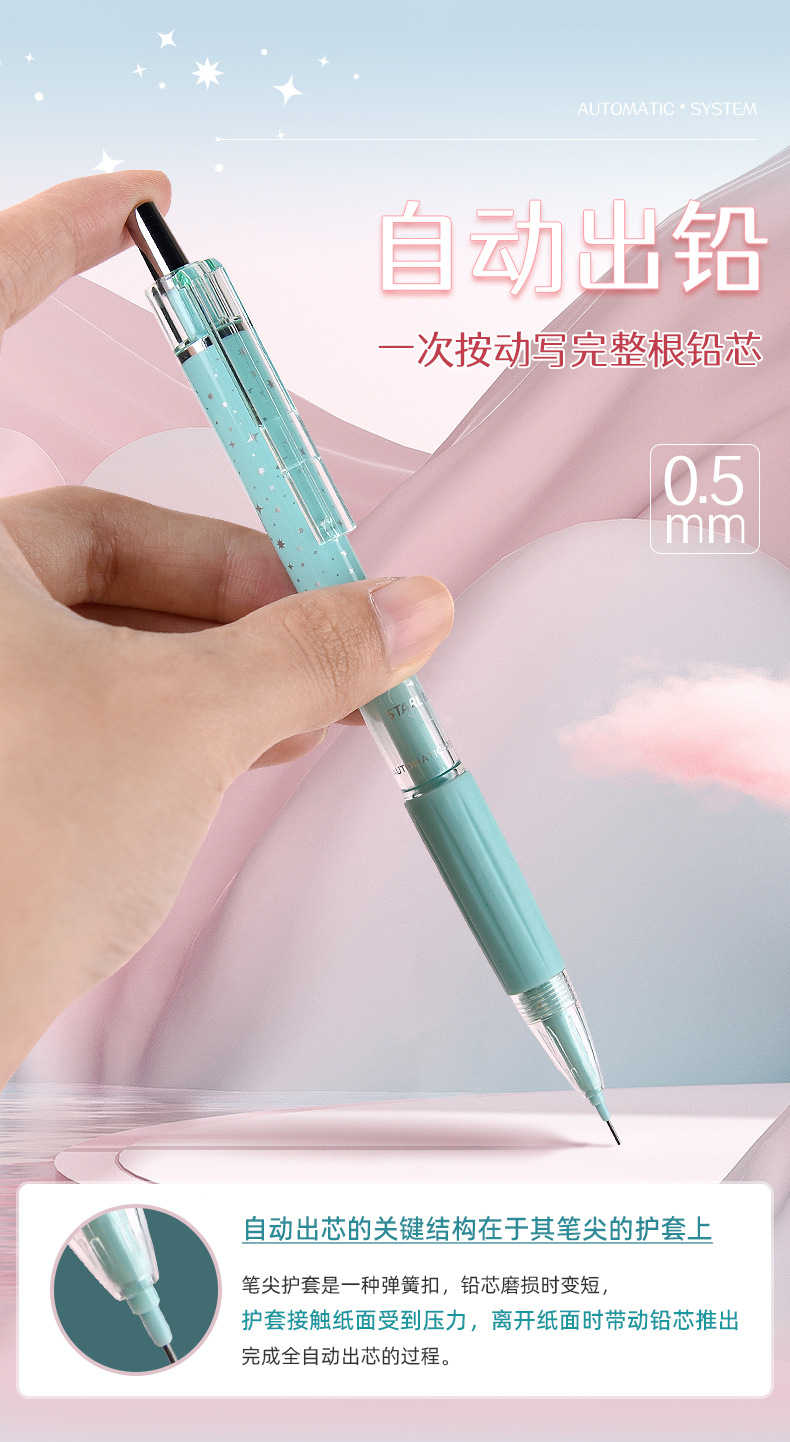 지능형 자동 리드 보충 0.5mm 학생 쓰기 드로잉 시험 자동 활동 연필 일정한 코어 프레스 리드