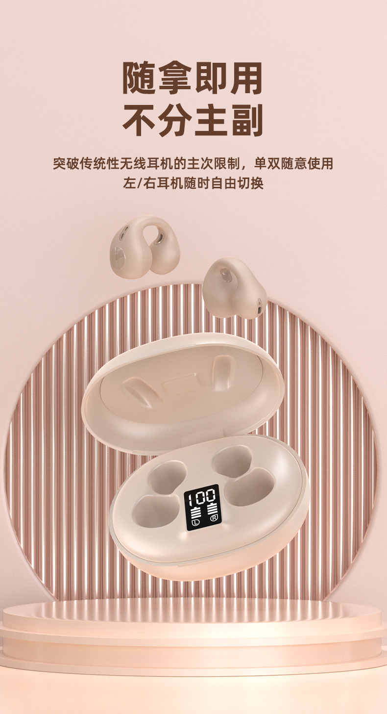 국경 간 새로운 E100 편안한 클립 이어 블루투스 헤드셋은 고통없이 장기 착용을 5.3 매우 긴 내구성 높은 음질 범용