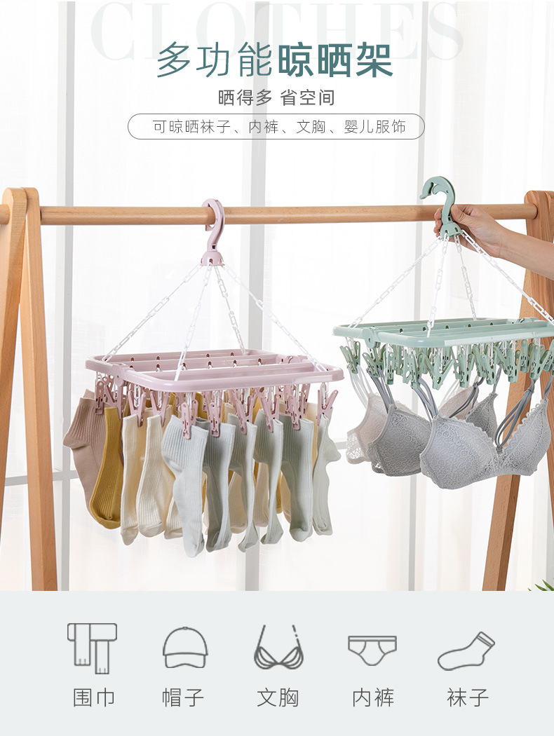 접이식 성인 32 클립 건조 양말 걸이 방풍 학생 건조 랙 가정용 아기 옷 걸이