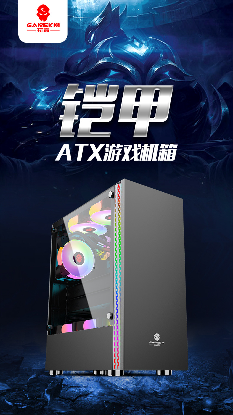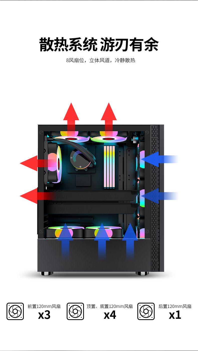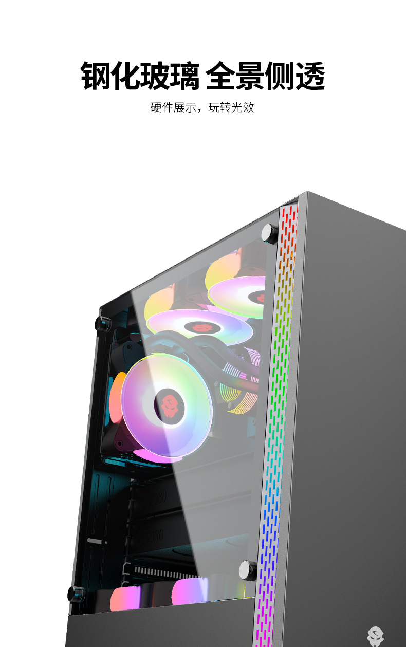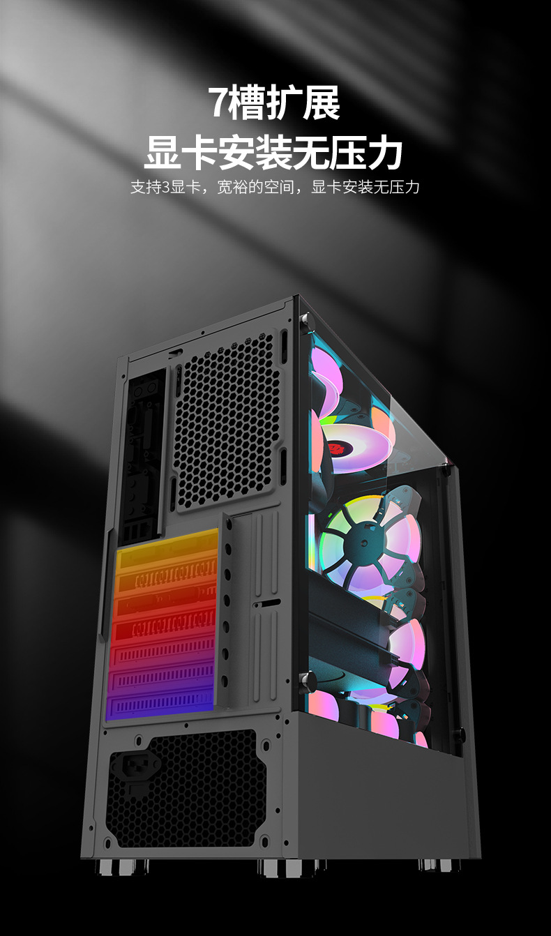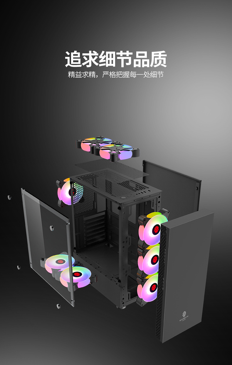铠甲ATX 7槽扩展游戏机箱全景侧透明钢化玻璃电脑机箱