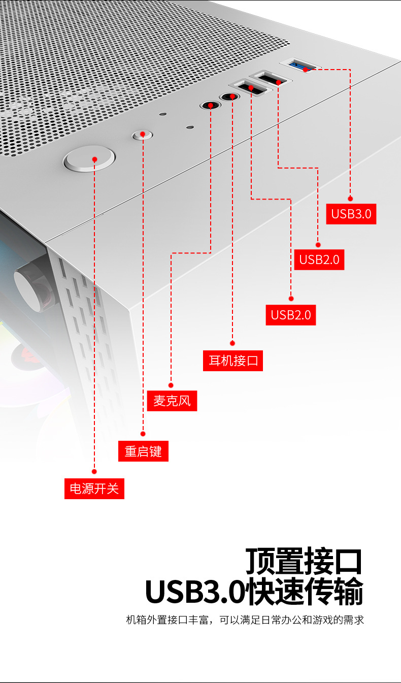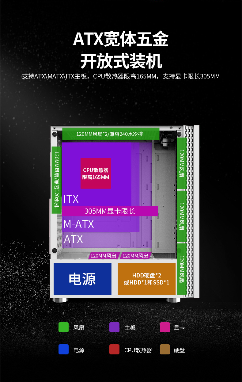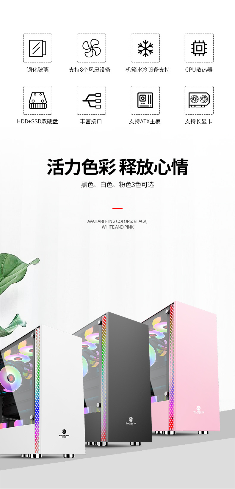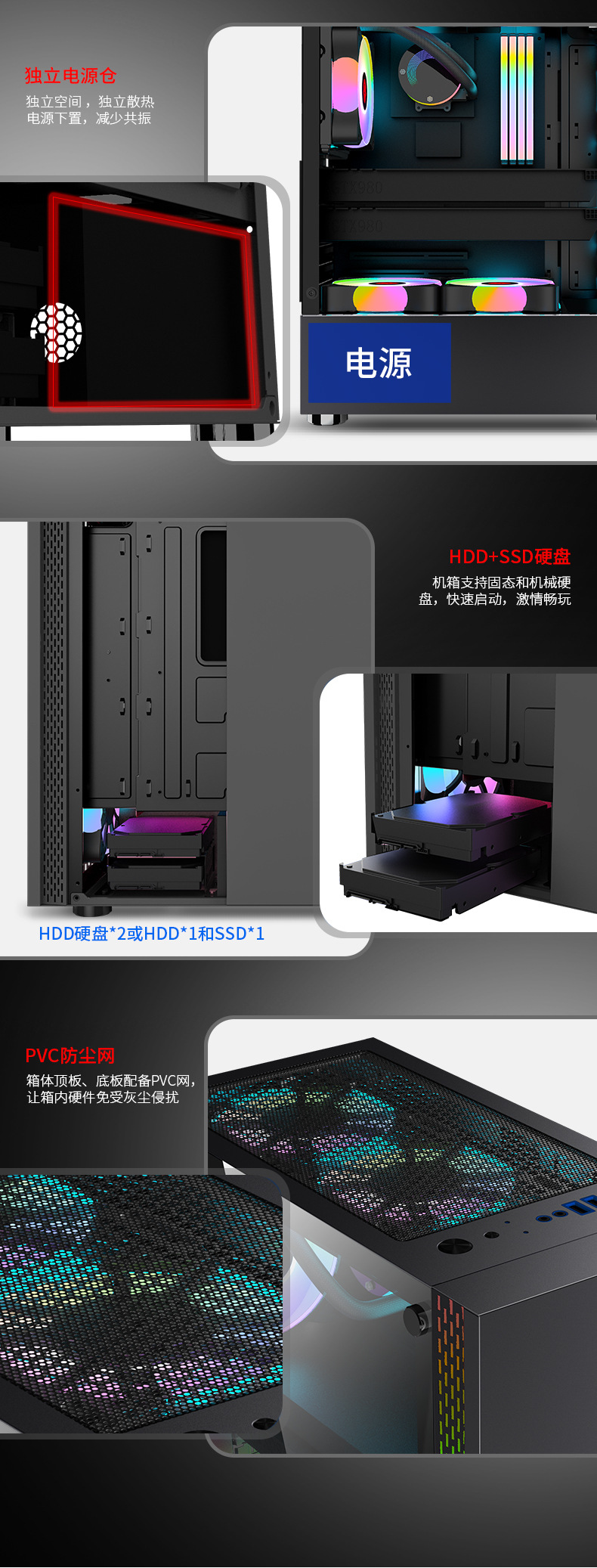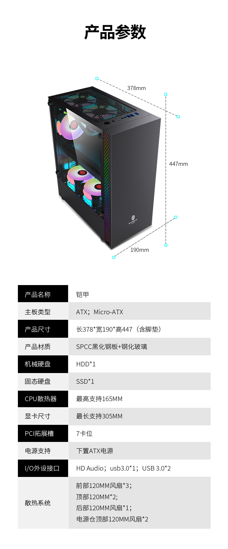 铠甲ATX 7槽扩展游戏机箱全景侧透明钢化玻璃电脑机箱