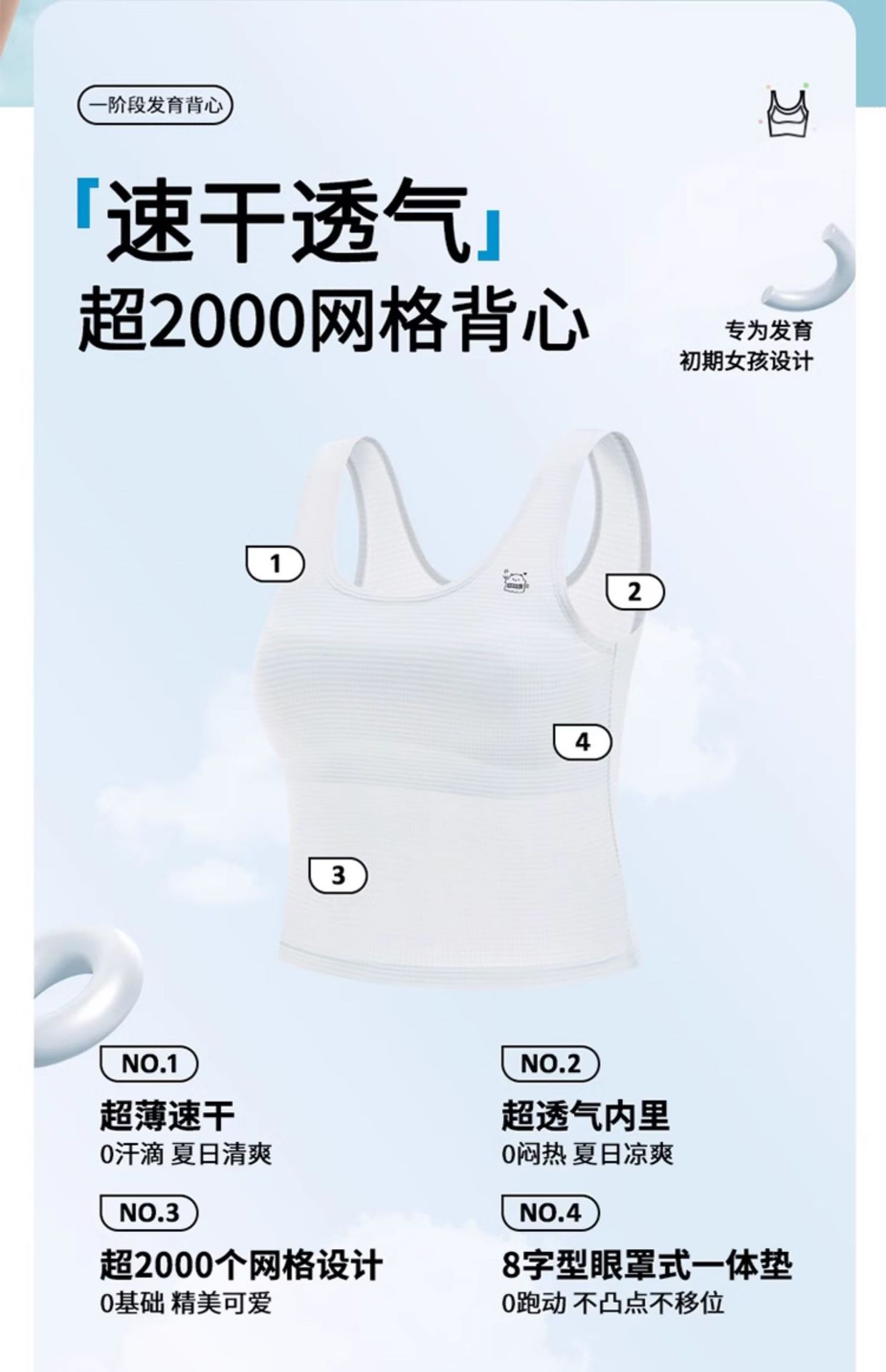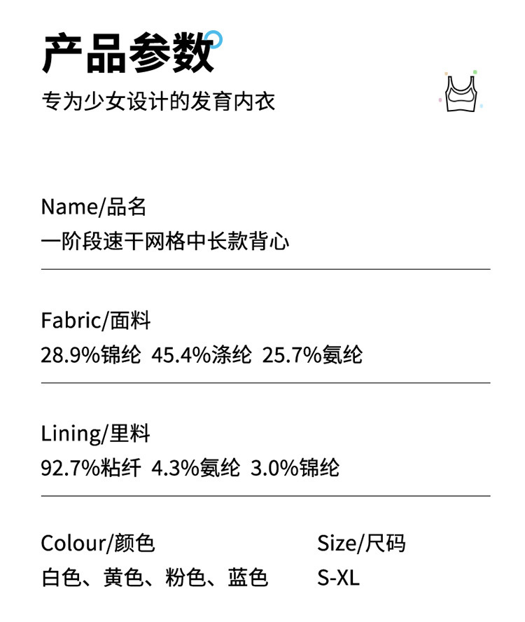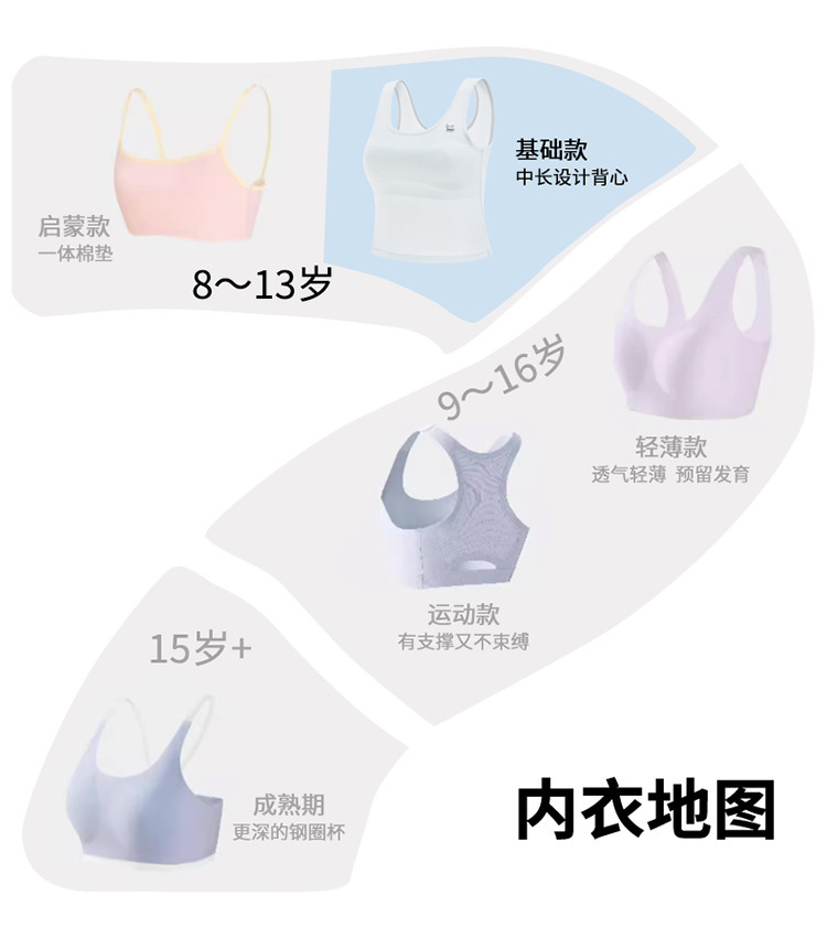 여아 속옷 개발 기간 스트랩리스 여학생 초등학생 사춘기 여학생 어린이 얇은 메시 작은 조끼 착용