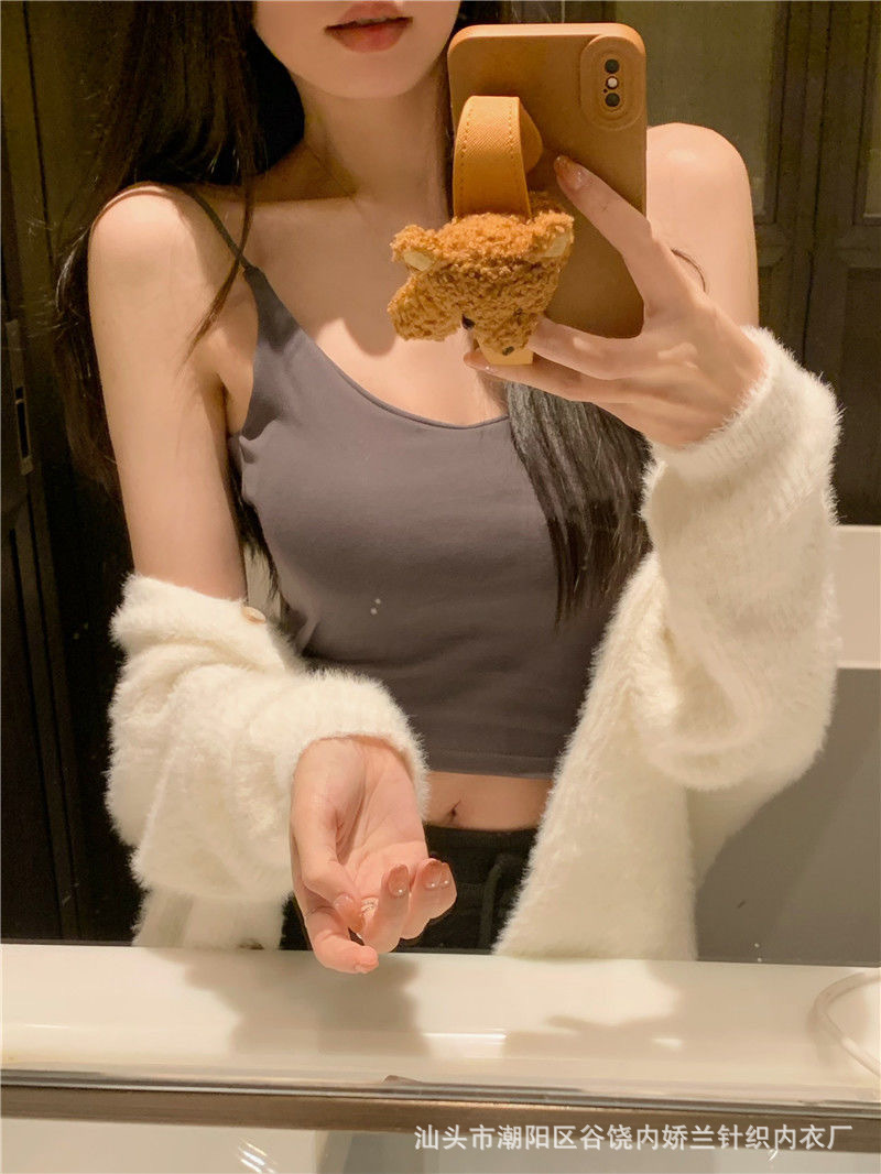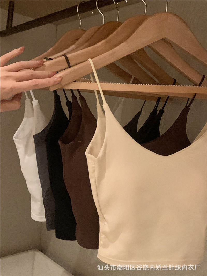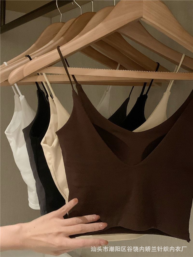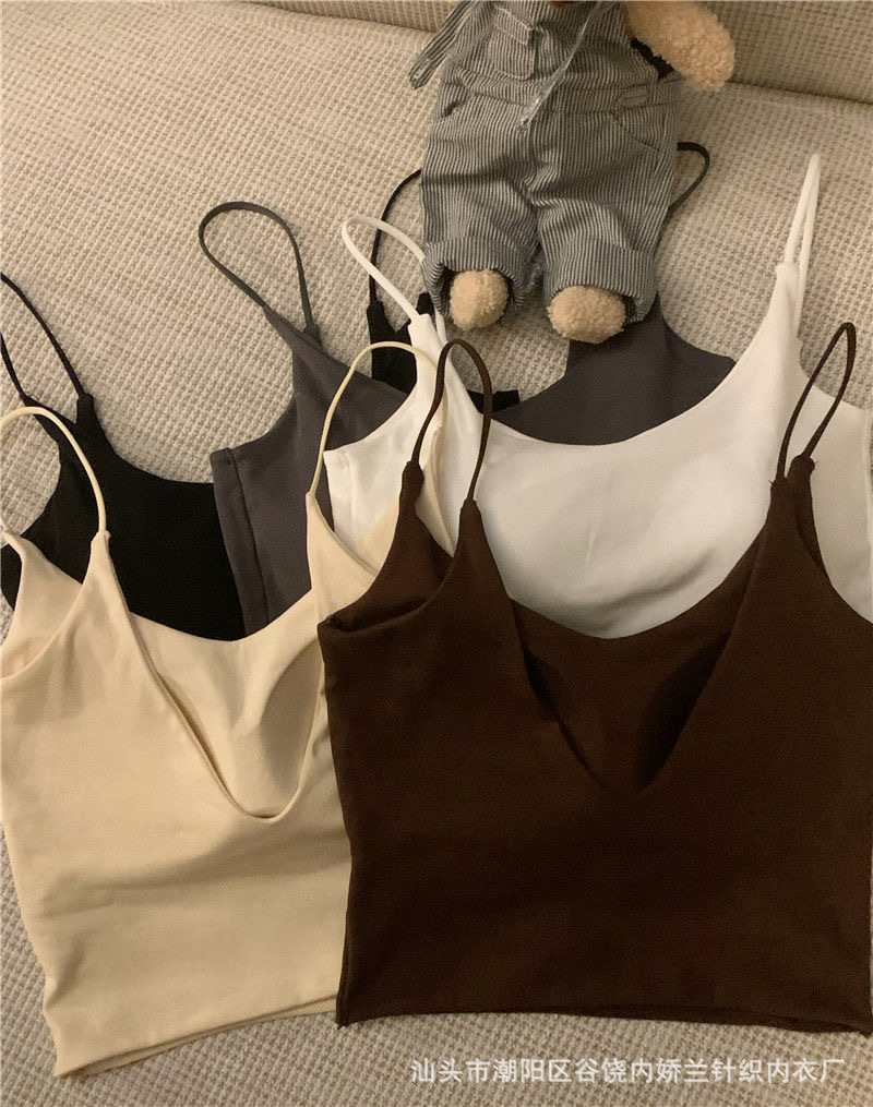 스파이스 걸스 V 넥 카미 솔 여성 조끼 고정 가슴 패드 아름다운 뒷면 스트랩리스 슬림 핏 내복 외부 착용 백리스 탑스토어 가기