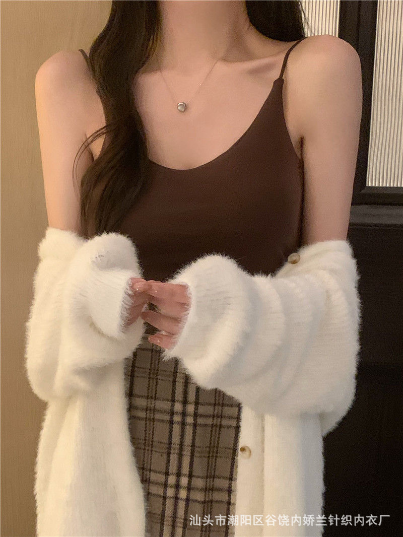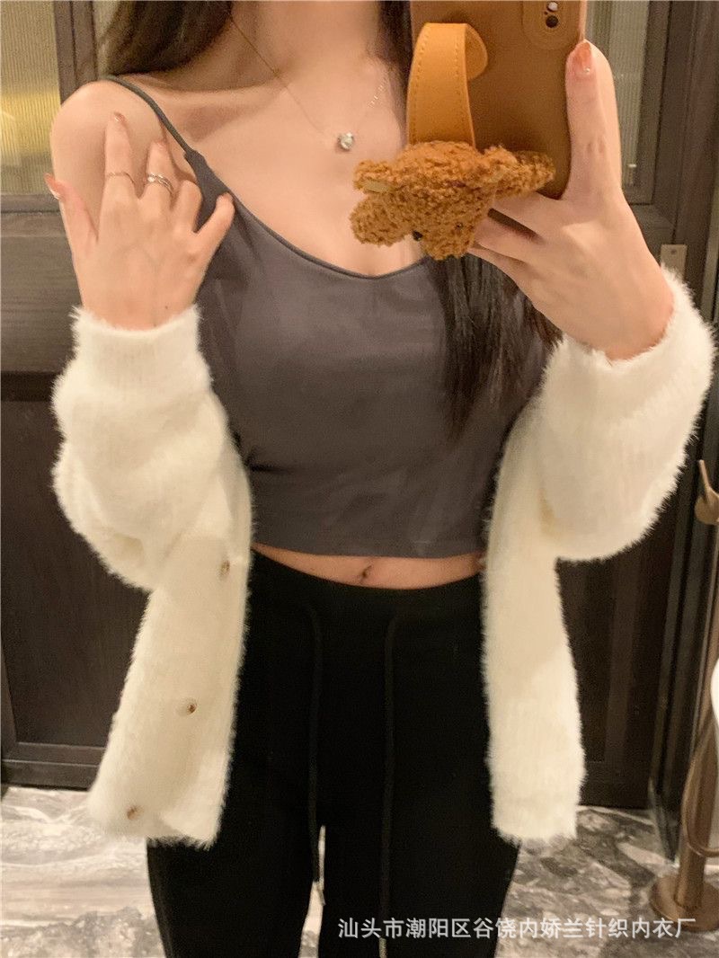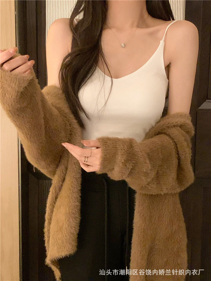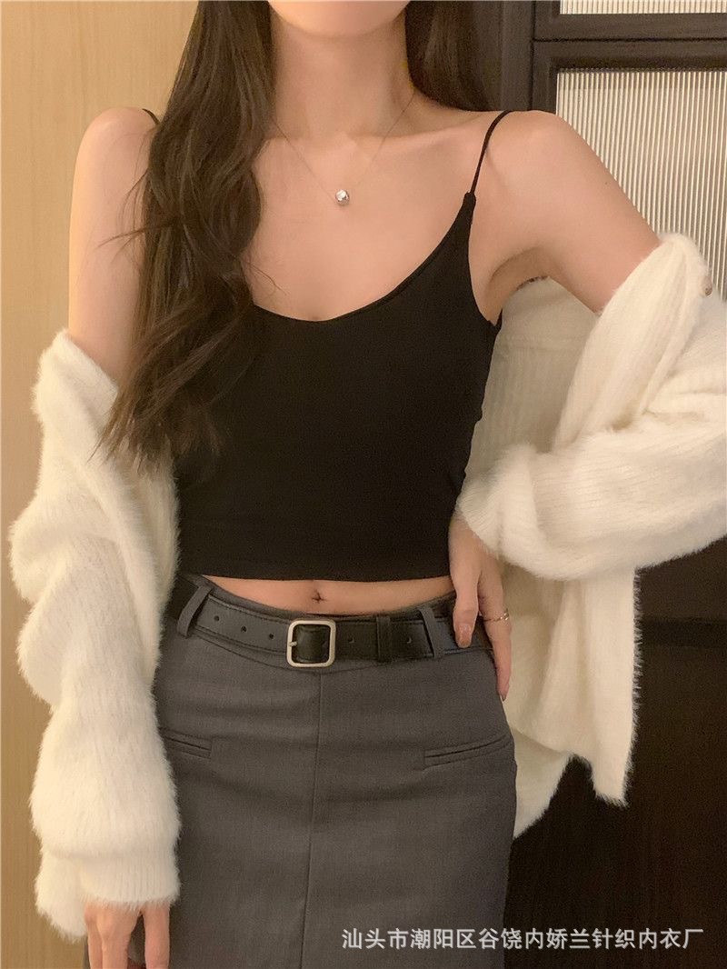 스파이스 걸스 V 넥 카미 솔 여성 조끼 고정 가슴 패드 아름다운 뒷면 스트랩리스 슬림 핏 내복 외부 착용 백리스 탑스토어 가기